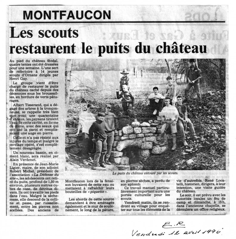 Enfoui sous des broussailles, le puits a été dégagé par les scouts d'Ornans en 1996 (voir l'article ci-dessous).