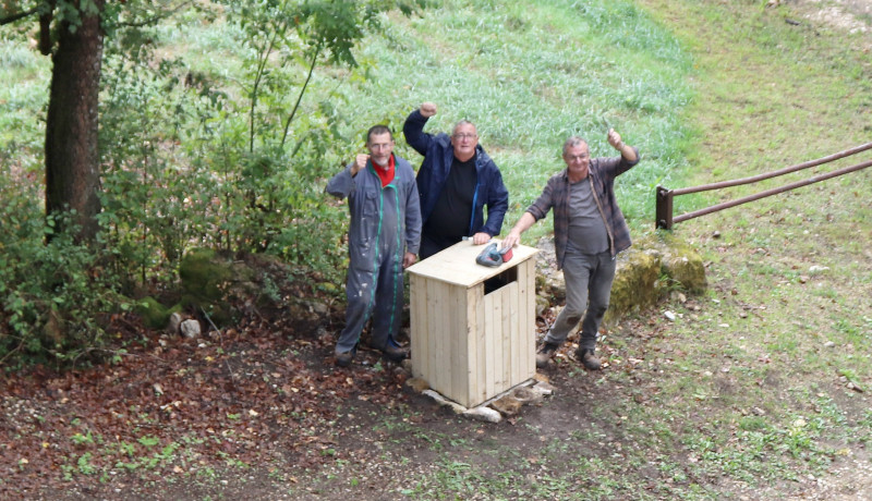 Il était temps de changer les poubelles en remplacement des fûts en plastique ou en tôle. Les prix exorbitants nous ont refroidis, et nous avons choisi de les confectionner nous-mêmes. En lien avec la commune, nous avons choisi de n'acheter que les bacs et de confier à nos "menuisiers maison" le soin de les habiller de la plus belle des façons. Le résultat final est impeccable!
