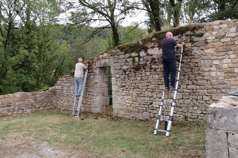 Dans le bourg, deux bénévoles ont continué à se battre avec les ronces et autres végétations envahissantes afin de remettre en valeur ces murs chargés d'histoire.