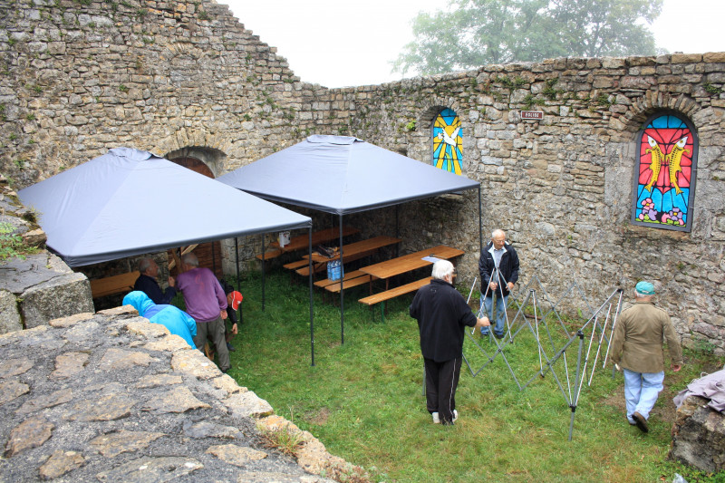 Pendant des années, les repas pris en commun lors des semaines de chantier, se partageaient dans l'église où des vitabris étaient installés. Des portes et vitraux en bois étaient posés pour "calfeutrer" les ouvertures pour plus de confort. Les derniers repas dans l'église ont été servis en septembre 2016.