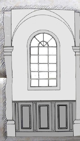La partie centrale est surmontée d'un fronton demi circulaire :