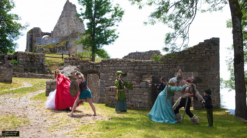 Notre site médiéval et son château a eu la chance d'être choisi par cette association pour organiser une journée "Shooting photos" le dimanche 26 août 2022. C'est ainsi qu'une dizaine de personnes de tous âges est venue passé la journée au pied du château. Chaque participant, aux costumes divers, a posé seul ou en groupes, au gré des initiatives de Stanislas FONTAINE, l'excellent photographe de l'association. Le résultat est magnifique.