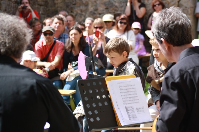 Un véritable spectacle musical pour enfants et parents. Imaginez "Le Corbeau" perché au-dessus des ruines de l'église et le "Renard" attendant son fromage au pied de l'édifice! Mais aussi, le "Chêne" trônant sur l'esplanade et le "Roseau" se pliant à ses pieds sans jamais se rompre! Ou encore, Perrette arrivant avec son "Pot au lait" sur le chemin du château ... que du bonheur à la portée de tous (tarif 5€ pour les adultes et 3€ pour les enfants).