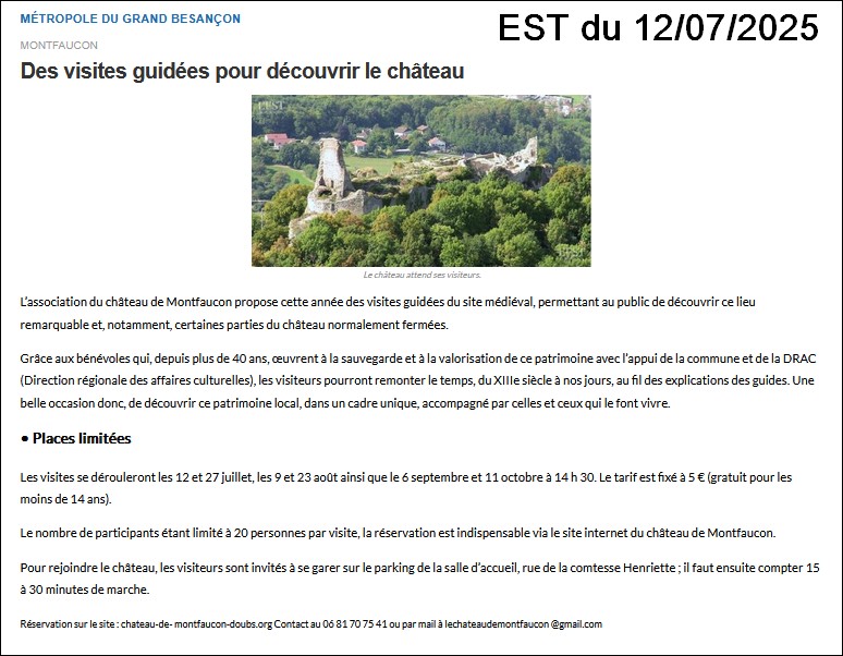 Les dates des visites guidées du château de MontfauconIl y a 9 jours