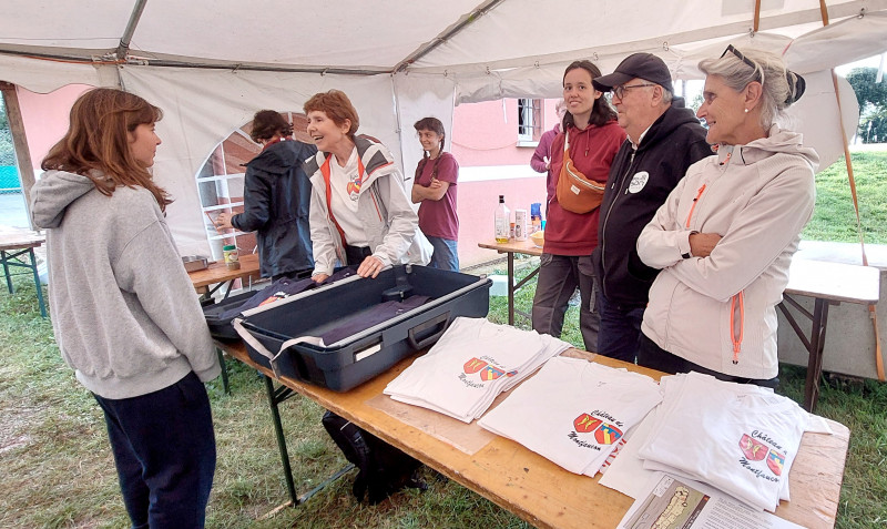 Le lundi soir, au cours d'une petite réception, chaque participant a reçu un tee-shirt du château offert par la Commune. Françoise ORDINAIRE, Présidente de l'association, et Pierre CONTOZ, Maire de la Commune, accompagnés par des bénévoles de notre association, ont souhaité la bienvenue à tout le groupe.