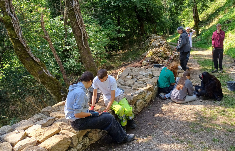 Après l'installation et les consignes données par les responsables du CVM au cours du week-end, tous les participants se sont rendus sur le site médiéval pour commencer les travaux programmés. Ils ont pu découvrir le site grâce à une visite guidée orchestrée par Julien ORSINI, un des guides de notre association.