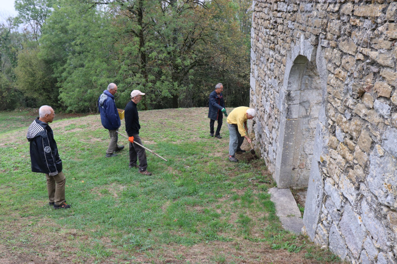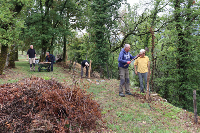 En vue de mettre en valeur l'excellent travail réalisé par le Club du Vieux Manoir au cours de l'été (démontage/remontage du mur en pierres sèches qui longe le sentier menant à la porterie du bourg), nous avons décidé de nettoyer les abords du sentier. Le travail réalisé par le Club du Vieux Manoir est ainsi plus visible, et chacun peut s'imaginer maintenant le talent qu'il a fallu aux responsables, mais aussi à celui de la vingtaine de jeunes de 14 à 17 ans, qui ont œuvré dans une superbe ambiance pour en arriver à ce résultat. Le travail ne demande qu'à être poursuivi! BRAVO donc à tous, et à l'année prochaine pour continuer la rénovation de ce mur en pierres sèches.