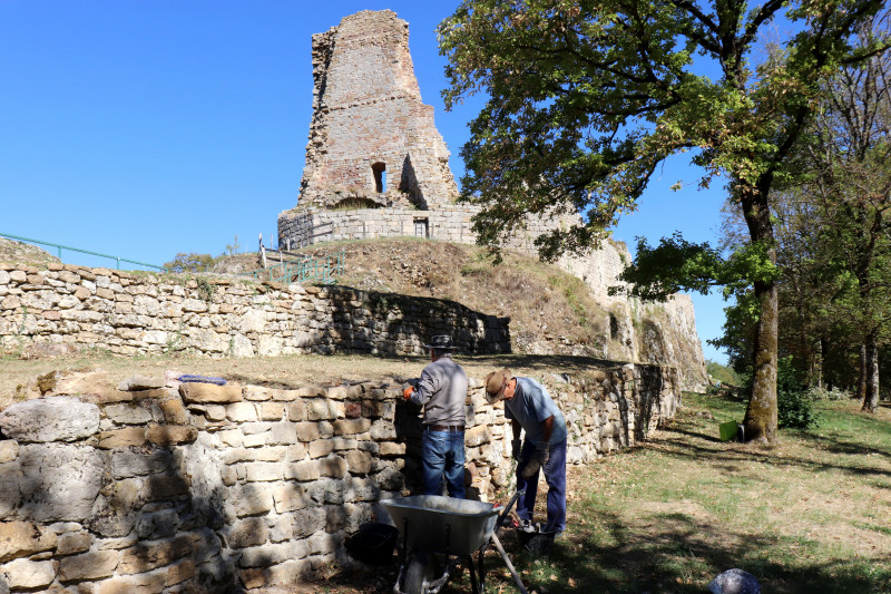Les membres du bureau peuvent être fiers de cette belle semaine de travaux au château de Montfaucon. Même si nous avons subi quelques averses au cours des derniers jours, le programme des travaux a été respecté ... voire dépassé! Et que dire du nombre de bénévoles?!?!?! 25 en moyenne par jour et même 19 un jour de pluie! ... c'est pas merveilleux? Et encore des nouveaux et des nouvelles ... que dire? Nous vous laissons trouver les mots ...