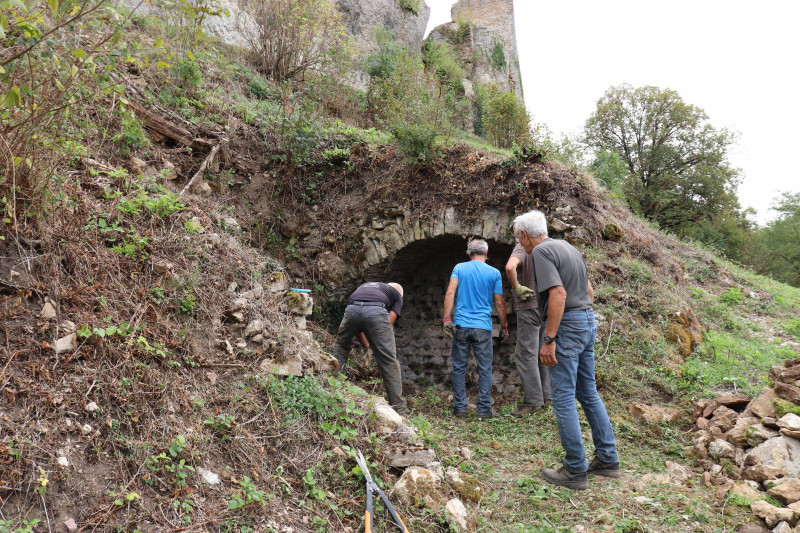 A la demande de Pierre CONTOZ, Maire de Montfaucon, la cave (ou citerne) située sur le versant ouest du château (dans le parc aux lamas) a été nettoyée et sécurisée en vue de futurs travaux de restauration.