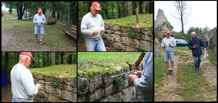 Quelques mètres plus loin, sur le versant ouest, c'est un travail de "pro", avec de vrais "pro" qui se poursuit. Déjà au mois de juin, les maçons de l'entreprise MAISONS CONTOZ avaient commencé à consolider et à sécuriser le mur d'enceinte rejoignant le donjon à la tour ronde. En ce mois de septembre, ils s'attaquent à la partie périlleuse avec beaucoup de soins et en respectant les consignes de l'archéologue. Il y a en effet la partie du mur d'enceinte mais aussi la partie interne avec des structures qui demandent un peu plus de réflexion. 4 murs en place, un départ de voûte? Quel est le lien entre ces éléments et la tour ronde? Autant de questions qui démontrent l'utilité d'une réflexion commune entre chacun des acteurs de ce "jeu de construction"!