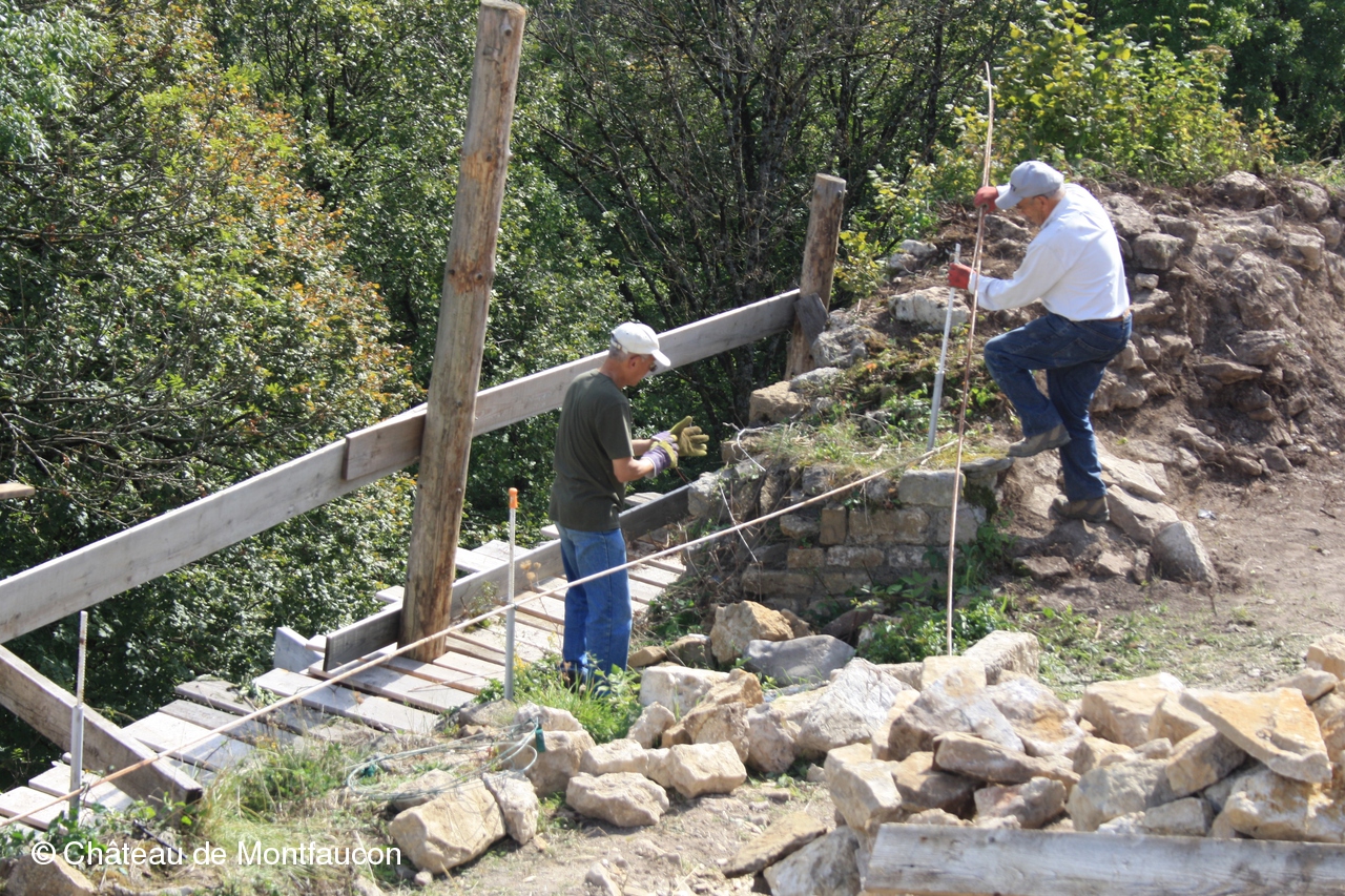 Le travail des bénéoles ne s'arrête pas à la fouille proprement dite, il faut aussi sécuriser les lieux, consolider un mur, mettre des protections aux endroits les plus sensibles. Ce travail est également inscrit dans le programme de la semaine de chantier tout comme l'entretien des espaces de verdure qui font la beauté du site.