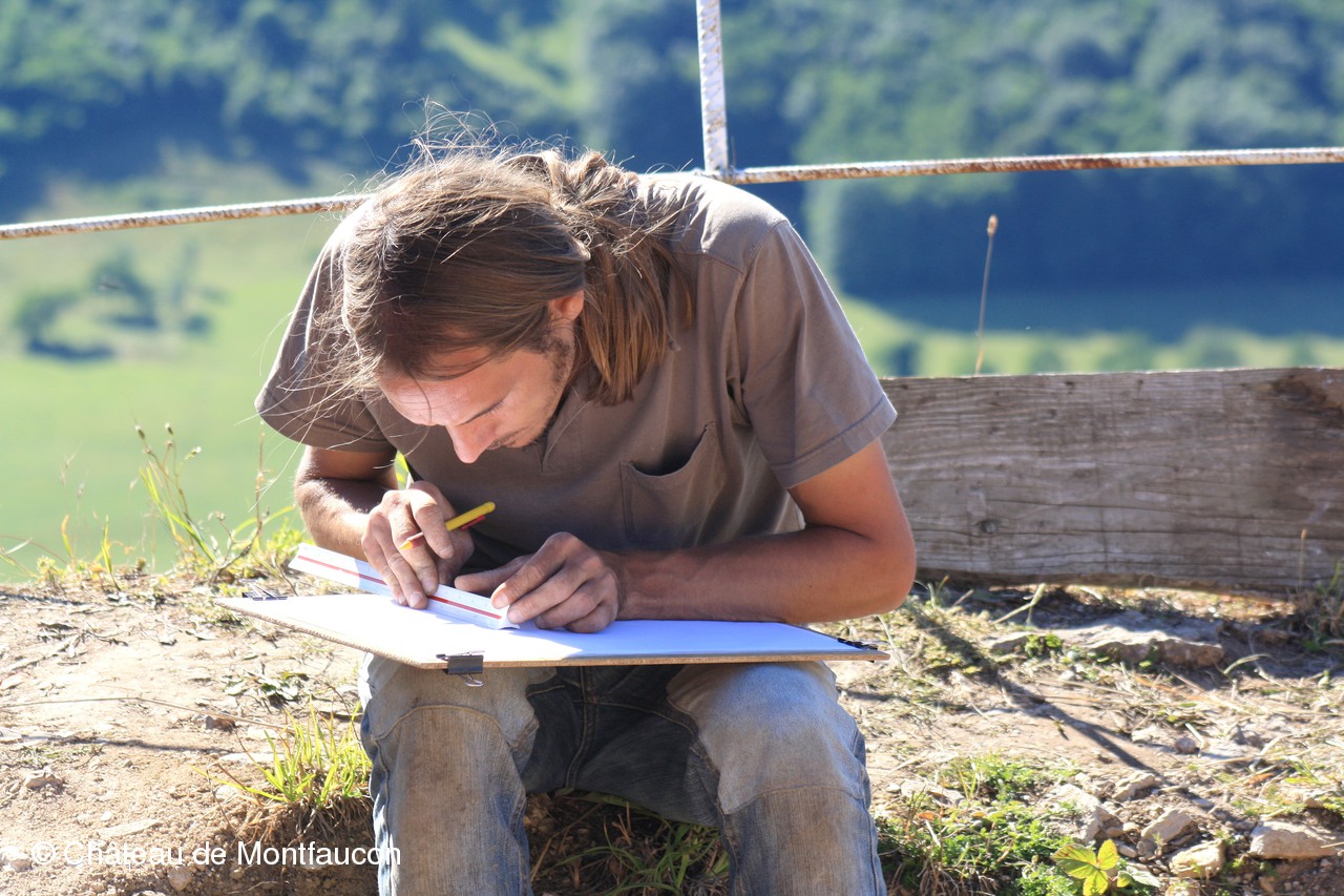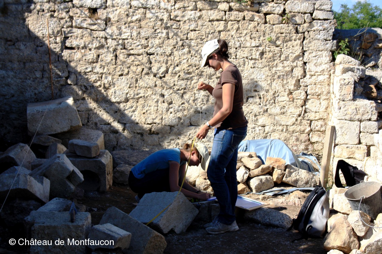 Au pied de la tour carrée, le "nettoyage" est maintenant réalisé. Les pioches ont laissé place au décamètre, au crayon, à la gomme et au papier millimétré qu'utilisent Camille, l'étudiante en architecture. Tout comme ses collègues archéologues, elle prend les mesures et reproduit les structures sur le papier utilisé à cet effet.