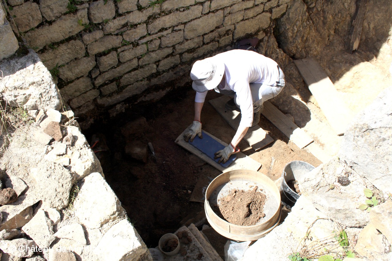 Au pied de la tour carrée et sur la partie ouest, les travaux de fouilles fines sont toujours en cours mais il est maintenant temps de pratiquer un nettoyage méticuleux pour la réalisation des photos et des relevés.