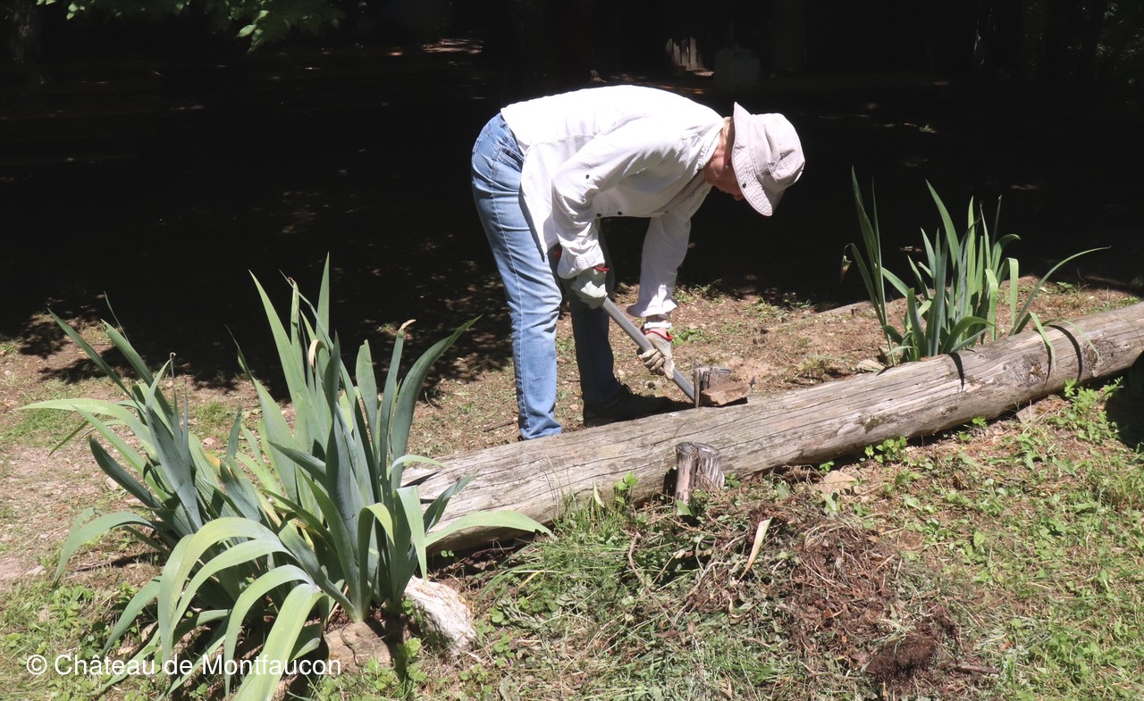 Pendant que les "gros bras" s'attachaient à couper les arbres, et d'autres à supprimer le lierre qui envahissait les murs de l'ensemble castral, des bénévoles s'activaient pour embellir les abords par des plantations aussi diverses que variées telles que des plantes mellifères pour attirer les abeilles en voie de disparition, des iris et autres fleurs, et même des plants de tomates et de courgettes. Belle façon de faire vivre ce lieu afin que chaque visiteur puisse se sentir "chez lui"!