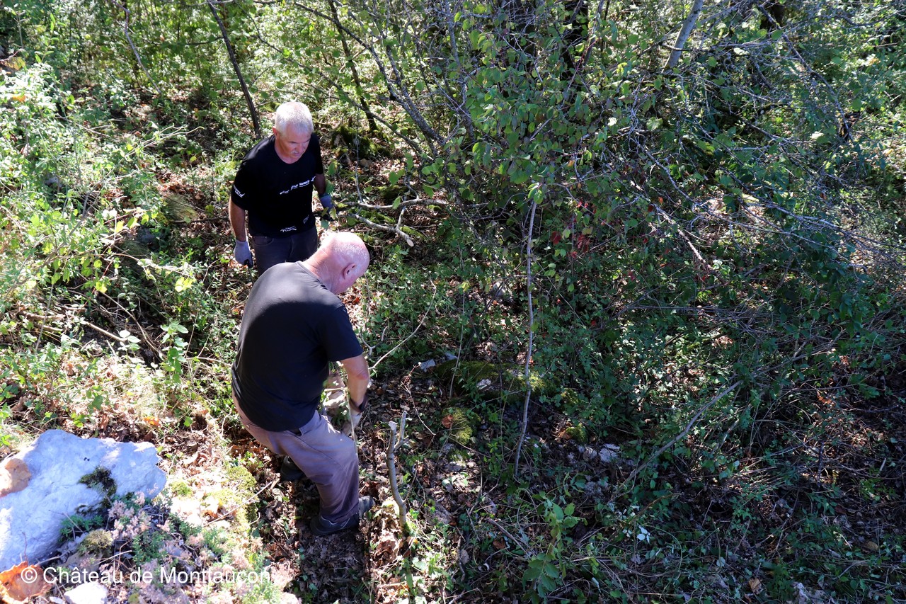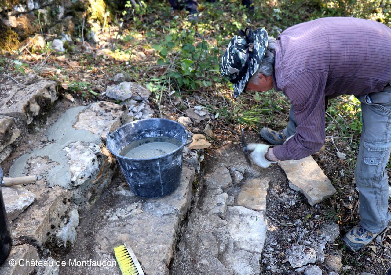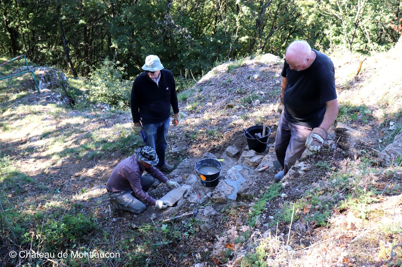 Parmi les travaux envisagés, et réalisables avec accord de la Commune, figurait la consolidation de l'escalier sud montant au donjon à partir du chemin de randonnée. Le travail a été réalisé.