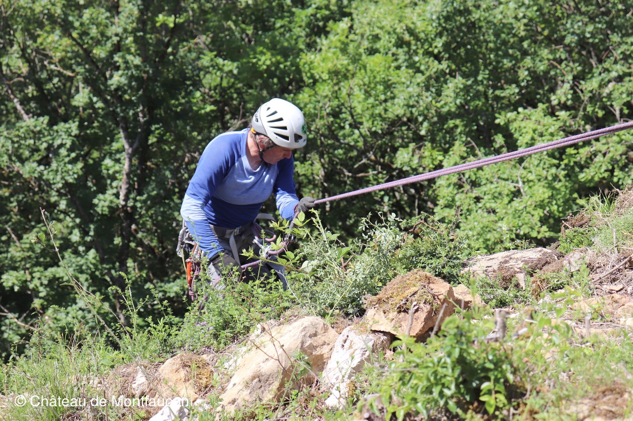 Travaux au château : un alpiniste prend soin des parois rocheuses