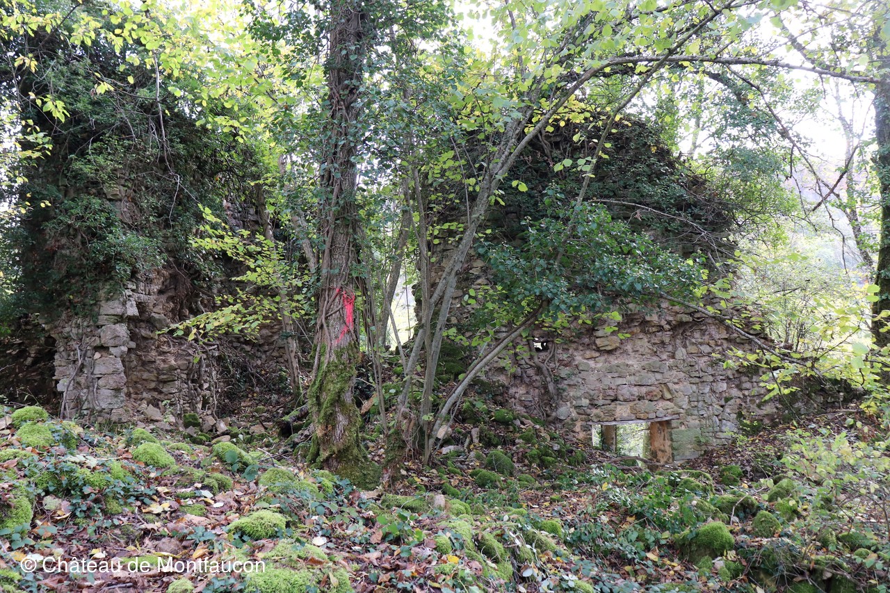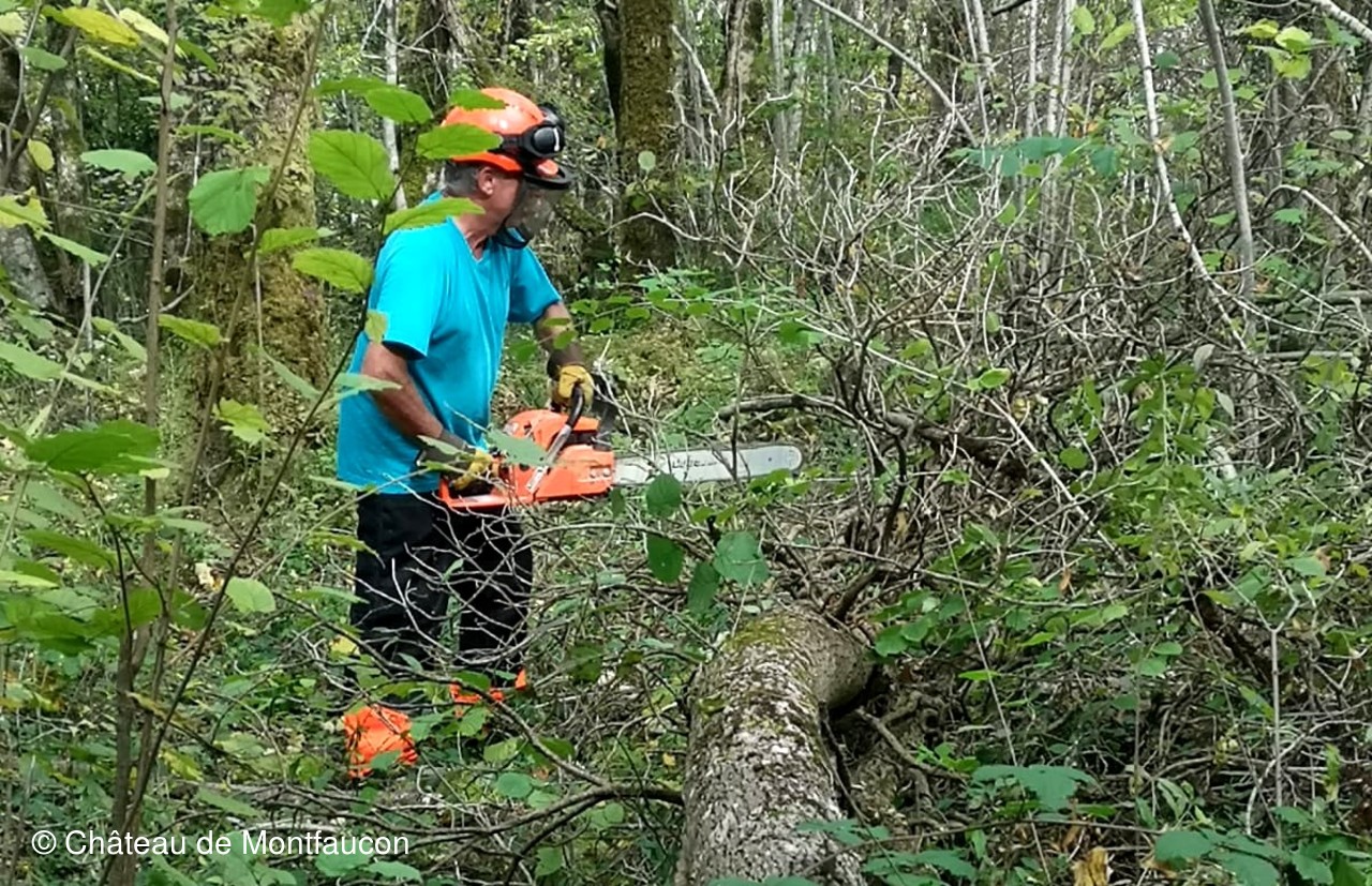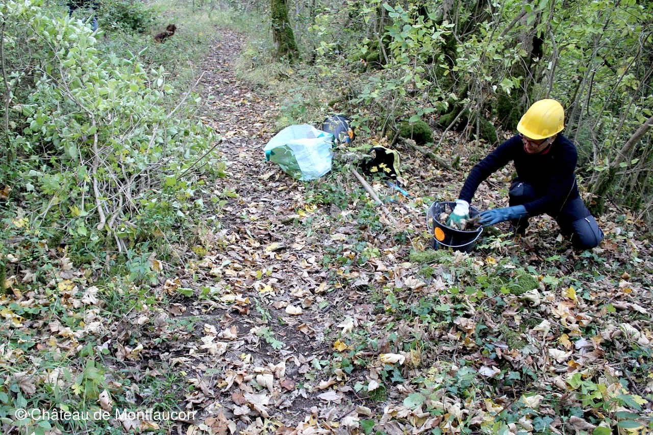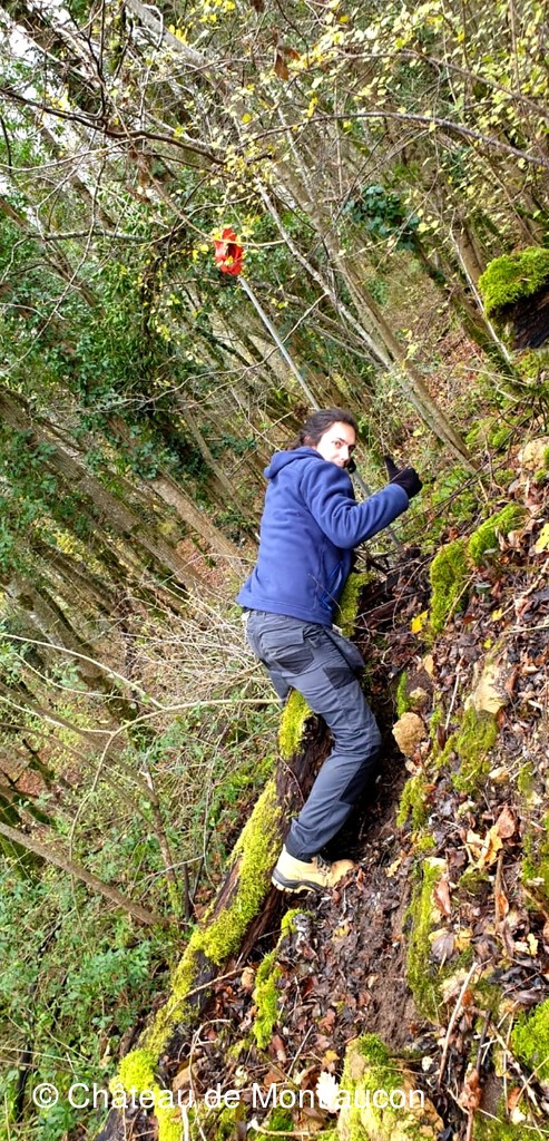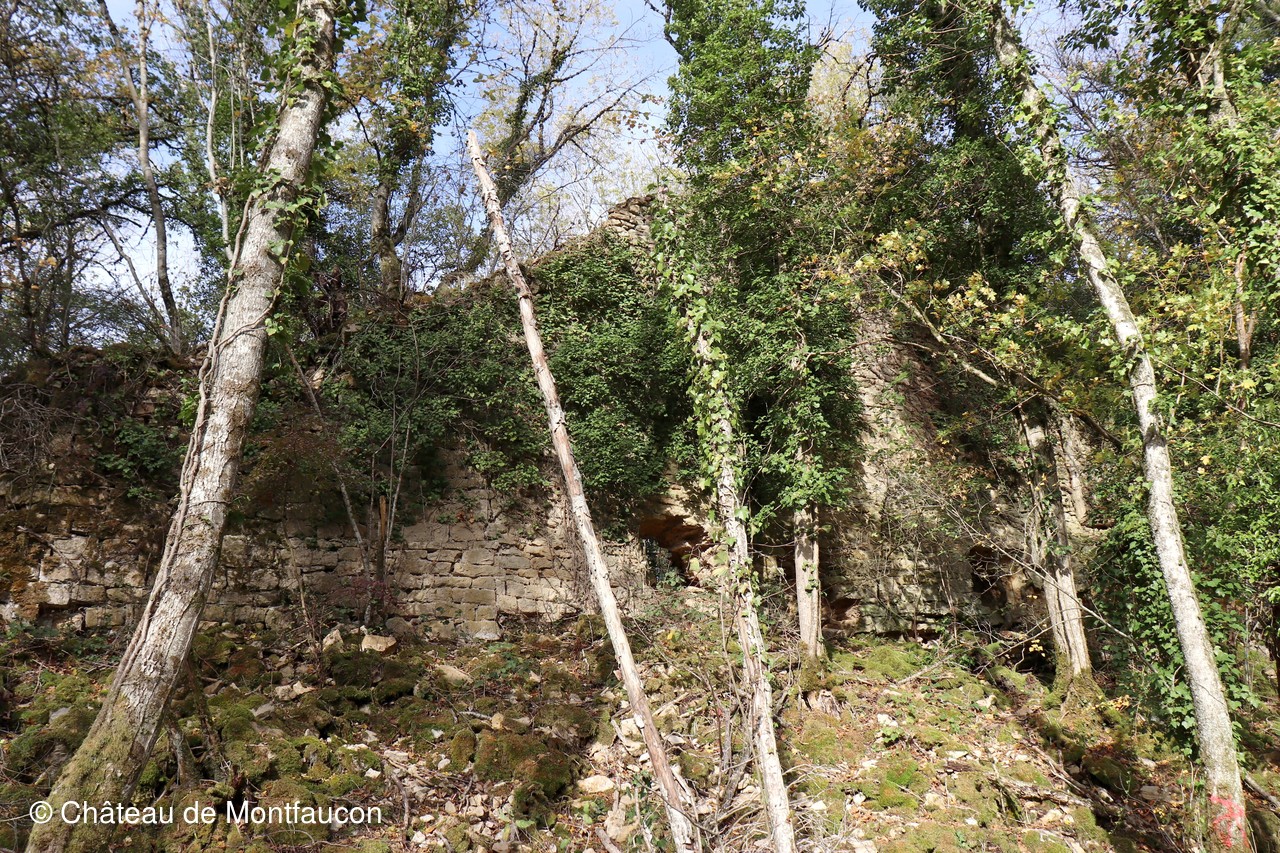Afin de l'aider dans ses démarches, une équipe de bénévoles de l'association "Le Château de Montfaucon", orchestrée par Christian DELODE, Vice-président chargé des travaux, a entrepris de nettoyer les abords du bourg. A la demande d'Adrien, les bénévoles, après accord de la Commune et des responsables de Natura 2000, ont dégagé le chemin d'accès au bourg, puis certains espaces stratégiques, afin qu'apparaissent nettement les vestiges qui seront photographiés, analysés et consignés dans un mémoire par Adrien.