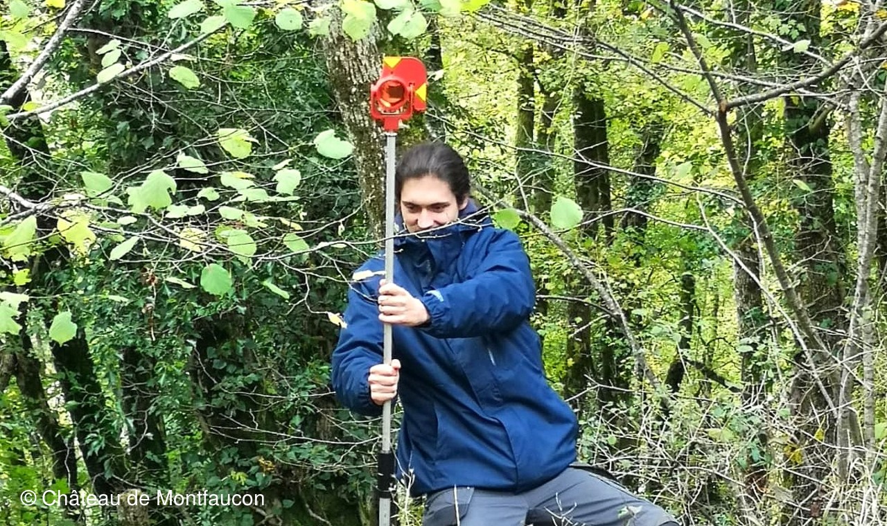 En effet, depuis plusieurs mois, Adrien LUGAND, étudiant en master 2 (spécialité archéologie du bâti), est chargé par l’université de Besançon d’étudier le bourg (prospection diachronique et étude archéologique des élévations du bourg castral). Après une première année à "apprendre à connaître le site de Montfaucon et son histoire", Adrien se consacre, pour sa deuxième année, à "une lecture architecturale des maçonneries selon les méthodes de l’archéologie du bâti (relevés topographiques et acquisition photogrammétrique)".