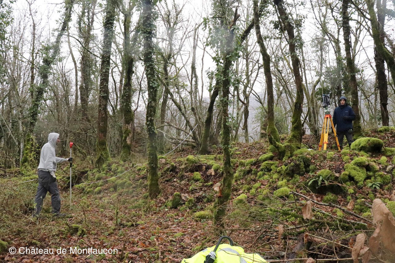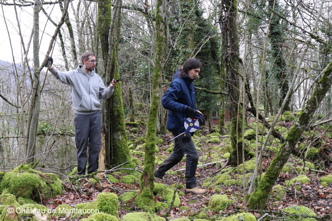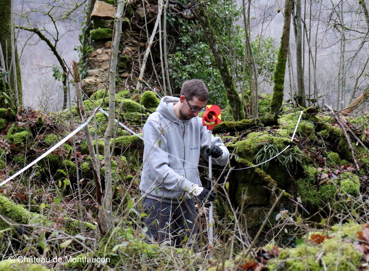 Les relévés se poursuivent dans l'ancien bourg. Adrien et Julien, comme ce jour, mais aussi d'autres de leurs collègues, viennent le plus souvent possible pour effectuer l'énorme travail de relevés des structures encore existantes. C'est un travail minutieux qui demande du professionnalisme, de la patience, de l'application et beaucoup d'expérience.