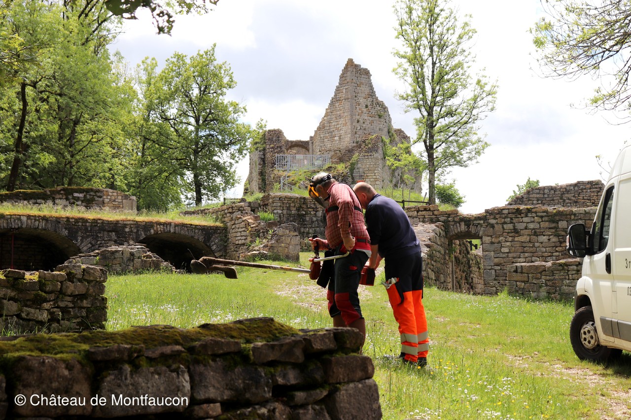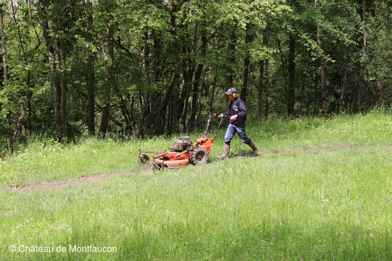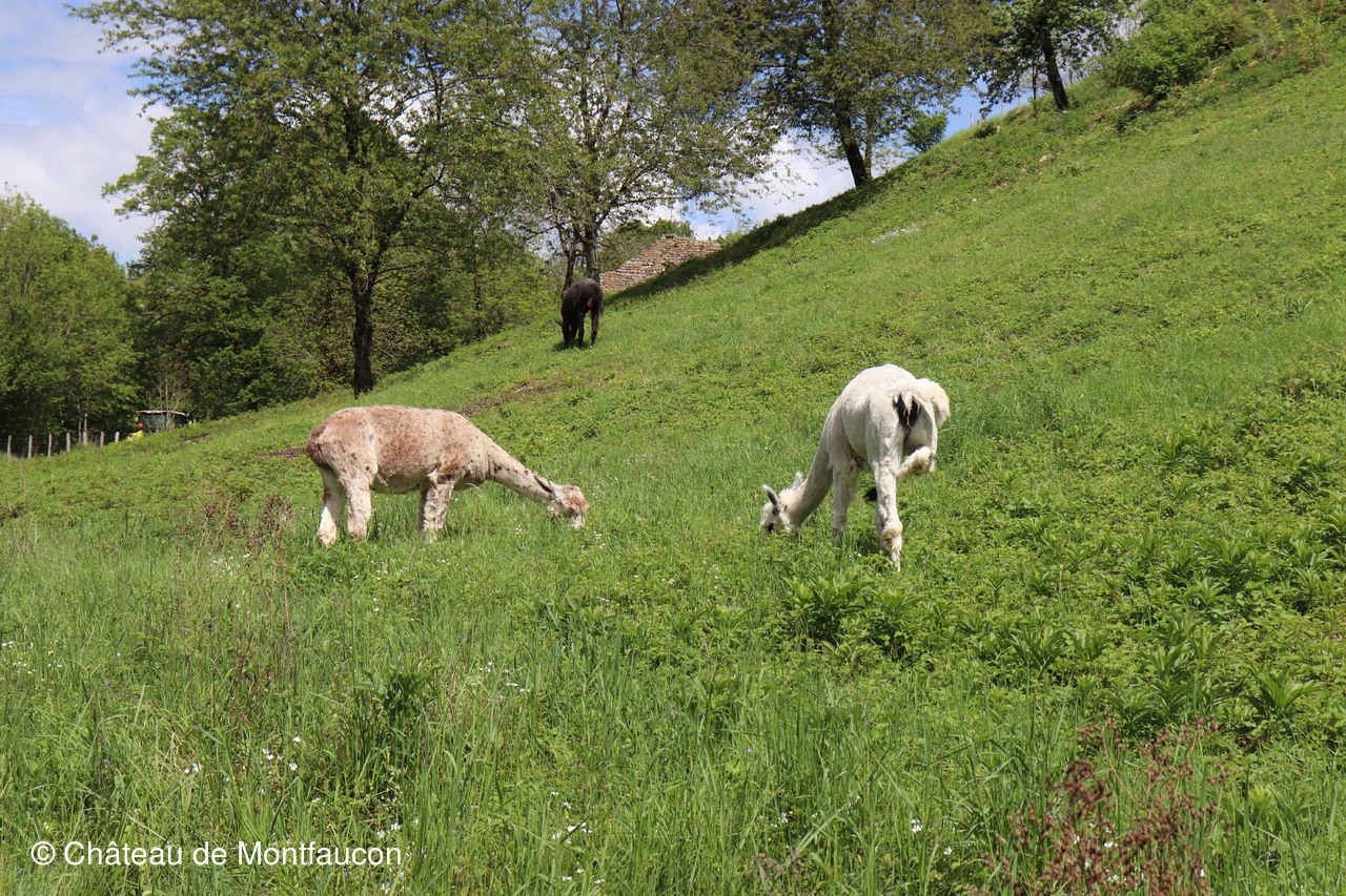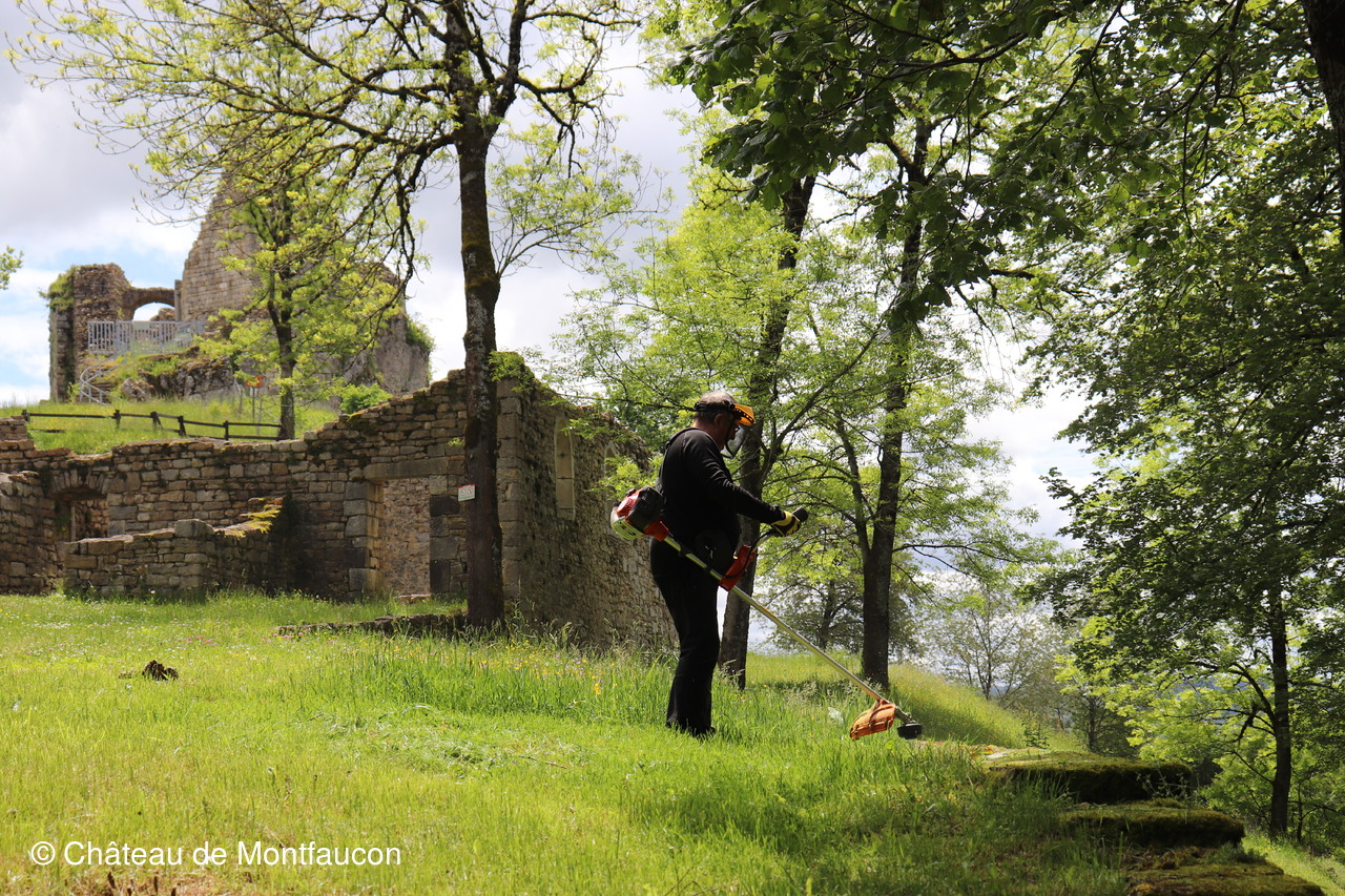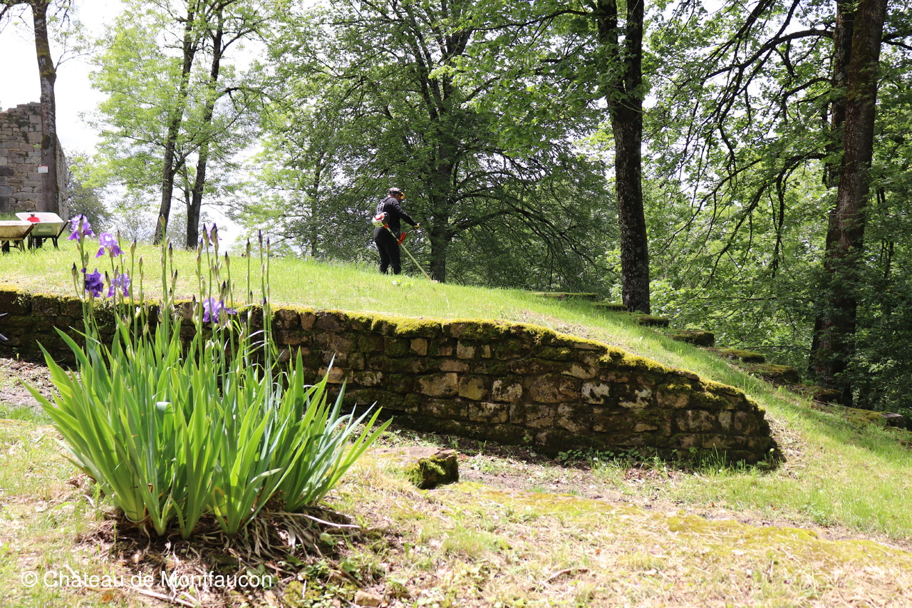 Alors que les lamas entretiennent paisiblement le versant ouest du site médiéval, une équipe de bénévoles de l'association "Le Château de Montfaucon" est venue bichonner les autres espaces verts qui en avaient bien besoin!