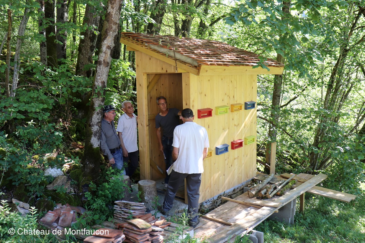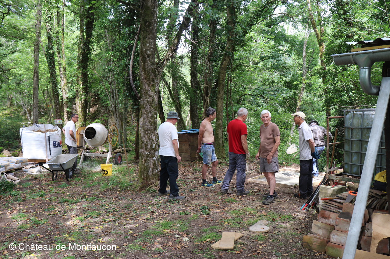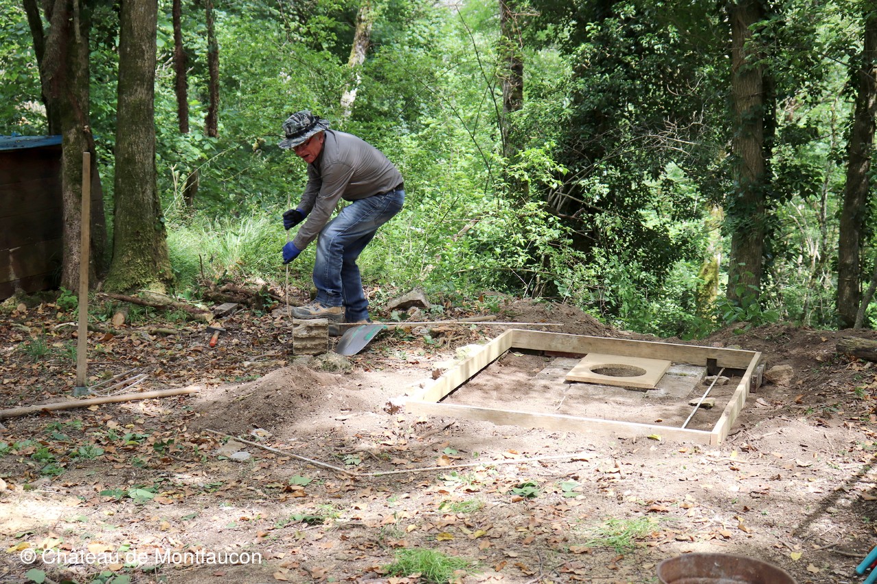 - La reconstruction des toilettes sèches était devenue une nécessité absolue suite aux dégâts engendrés par une bande de loubards irrespectueux au possible du travail réalisé par les bénévoles de notre association! Sur le modèle de nos amis des Vergers de Montfaucon, nos "spécialistes" ont commencé à réaliser les fondations .. un travail qui ne laisse rien au hasard.
