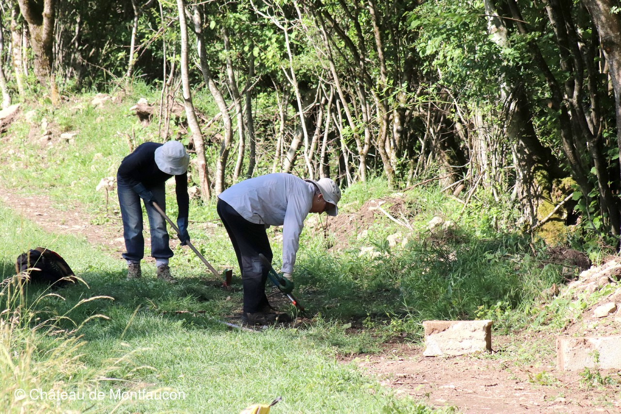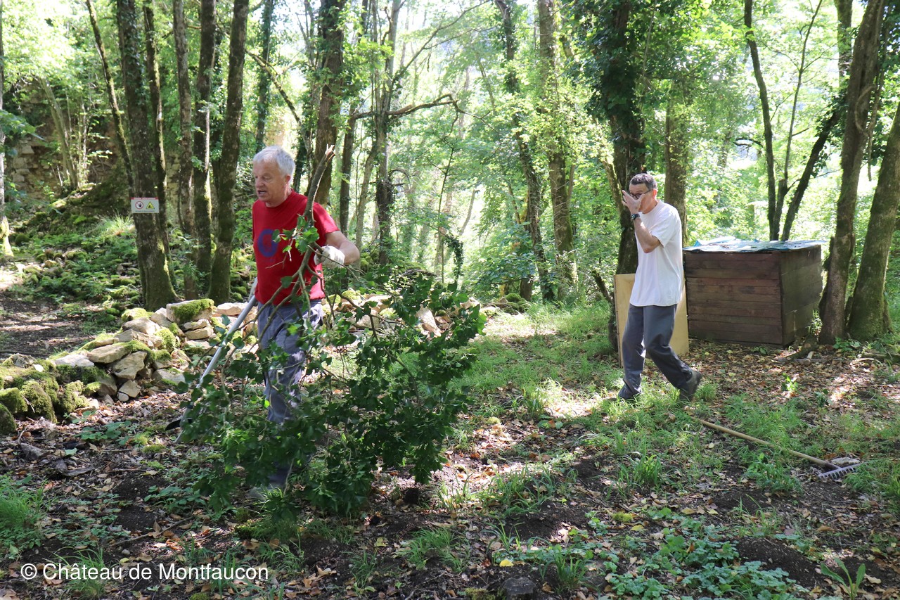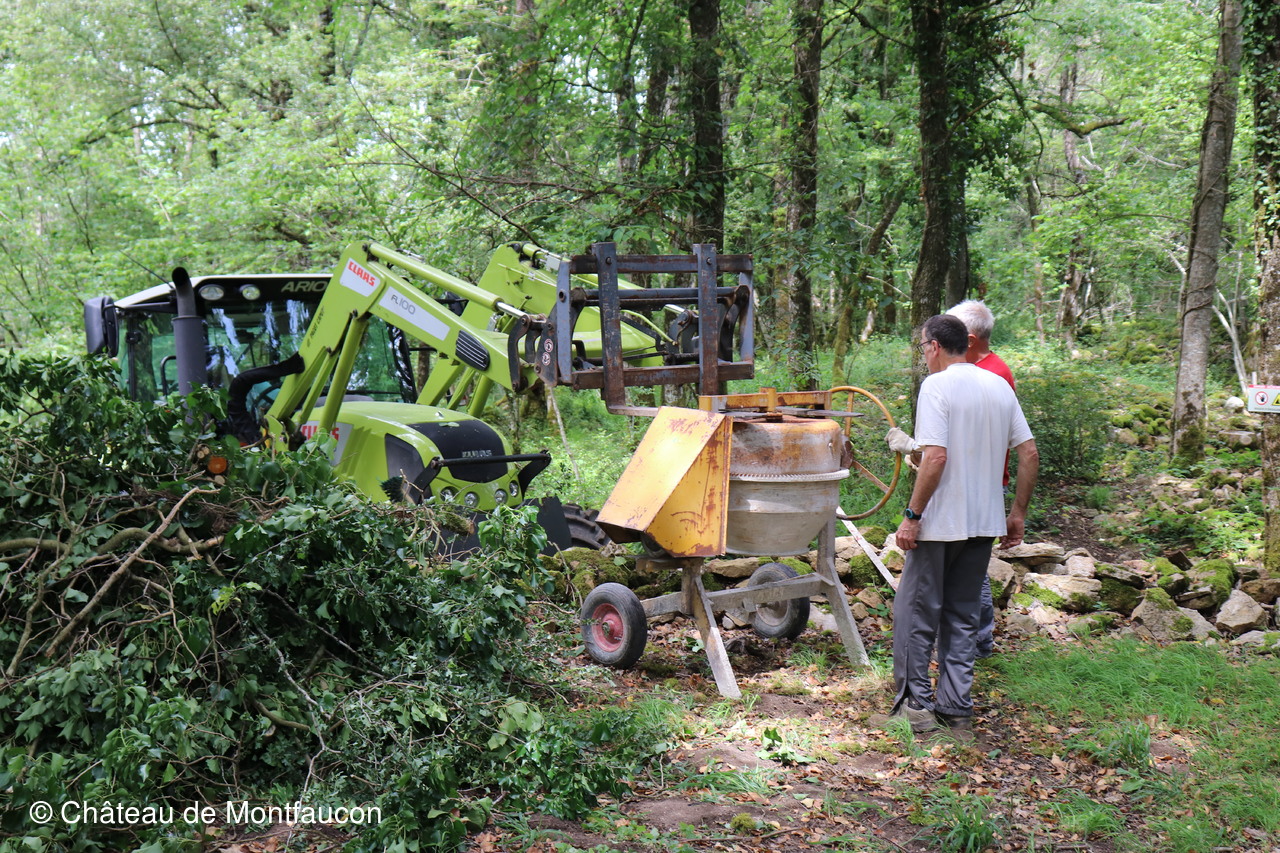 - Le chemin allant du cimetière au parc à lamas méritait un entretien, c'est ce qu'a entrepris de réaliser notre duo d'artistes à quatre mains aidées par notre maestro à la brouette. Le chemin est maintenant prêt à accueillir les futurs marcheurs et coureurs du Trail Solidaire de Montfaucon (3 juillet) et le Trail des Forts (28 et 29 août).