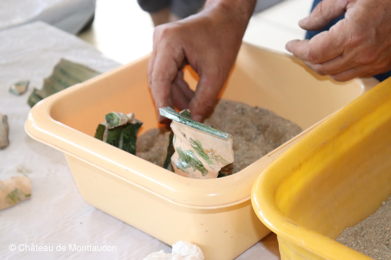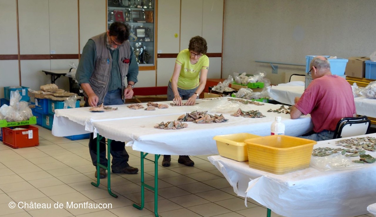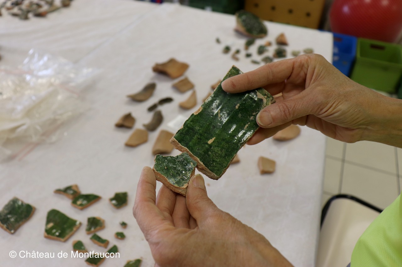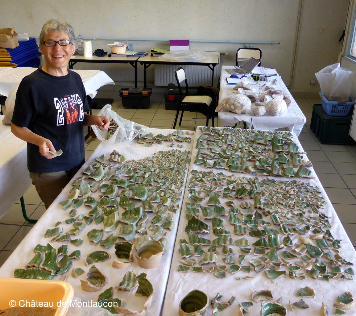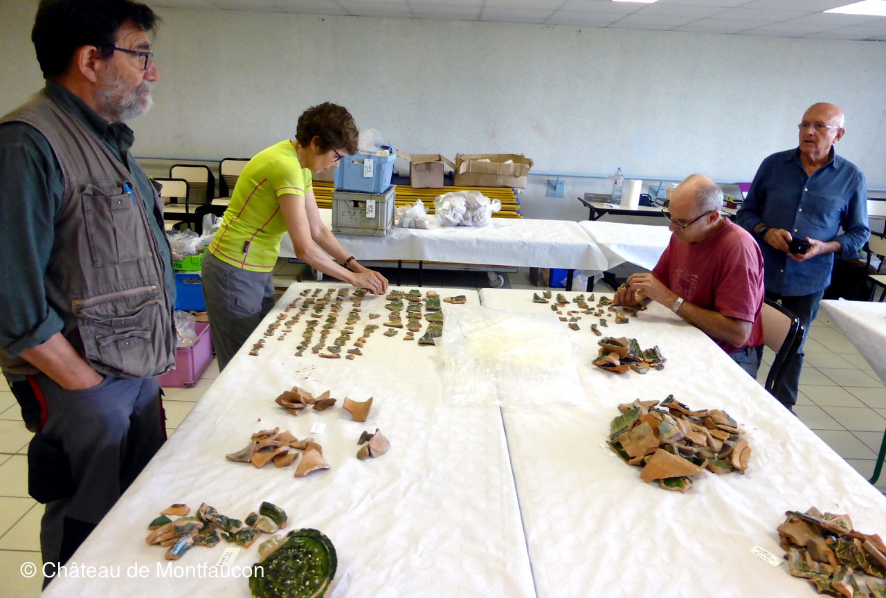 Quel plaisir de retrouver l'archéologie lors de cette semaine de chantier! Une équipe de 5 à 6 bénévoles a assisté Jean-Jacques SCHWIEN, notre archéologue, dans son travail d'inventaire du mobilier trouvé sur le site du château. Les néophytes ont pu s'apercevoir que ce n'était pas un travail aussi rapide qu'on le voudrait. Il faut être minutieux avec une dose de patience hors du commun. Retrouver un pot entier parmi des milliers de menus morceaux étalés sur des tables est un véritable jeu de patience. A noter que certains ont eu "plus de pot" que d'autres!!! Merci aux différents photographes qui ont su figer les moments de collage. Pour celles et ceux qui attendent le retour des fouilles au château ... patience et espoir sont nos maîtres-mots!