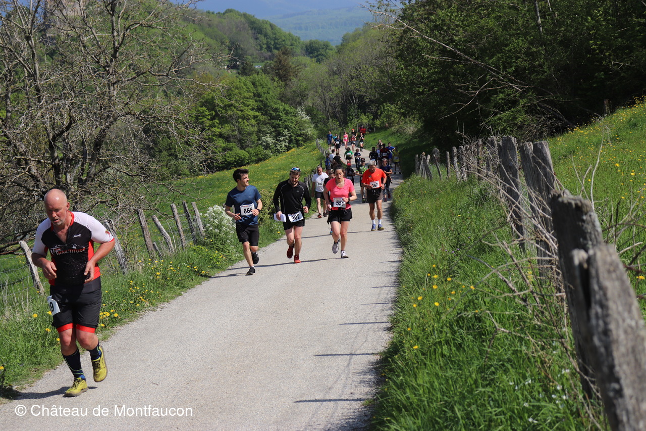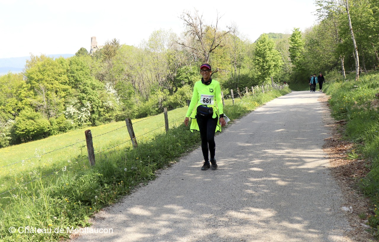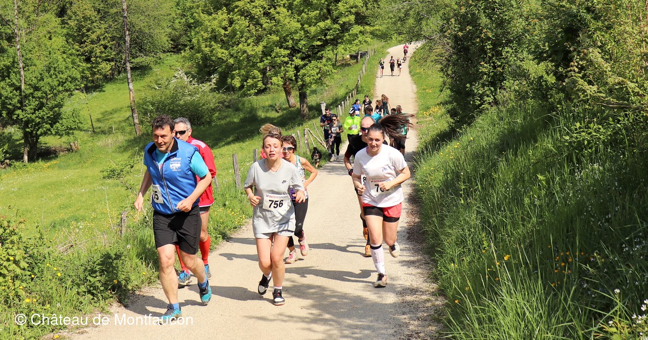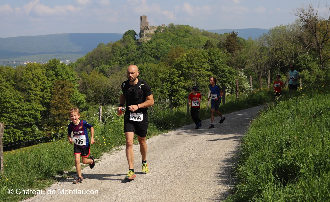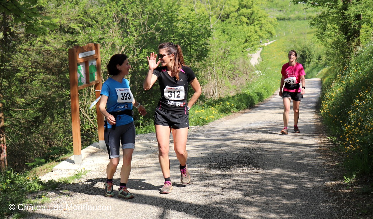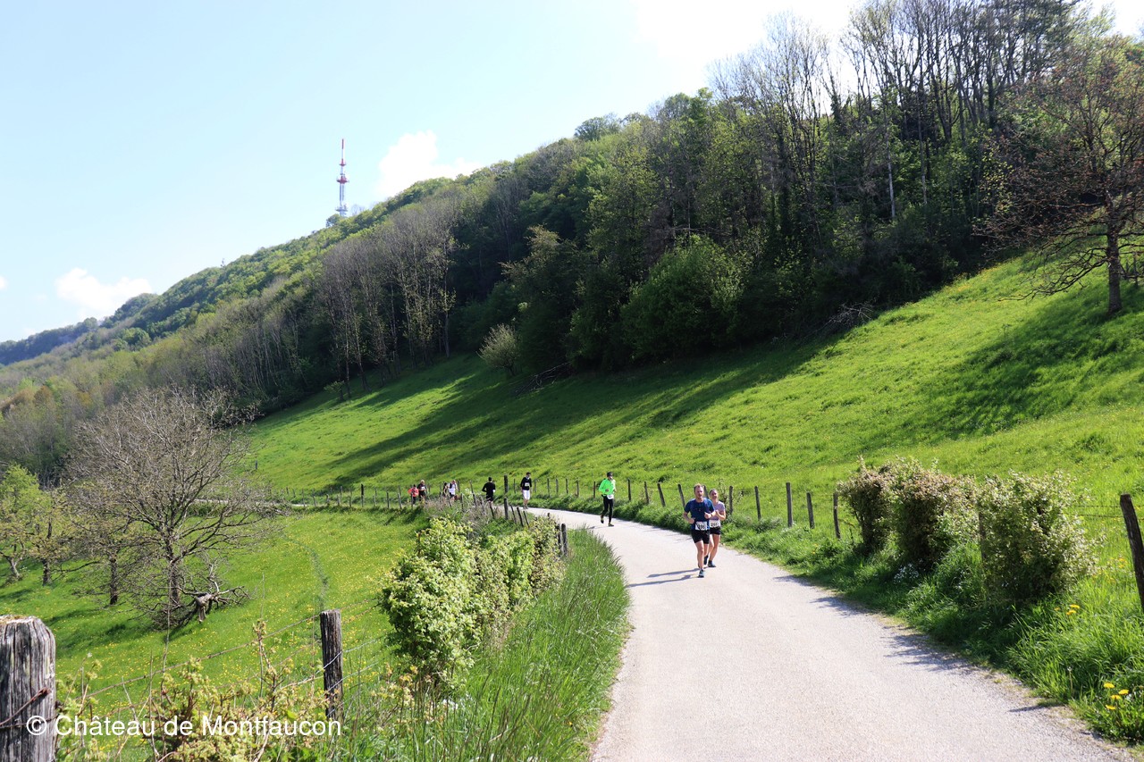 Le Trail de Montfaucon est passé par le château de Montfaucon puis les participants ont emprunté le chemin du Donjon qui mènait à l'arrivée (salle d'accueil). Malgré une montée un peu raide sur la fin, les sourires et les petits gestes de remerciements étaient au rendez-vous. Au fond du vallon, le donjon se dressait fièrement comme pour saluer sympathiquement marcheurs et coureurs.