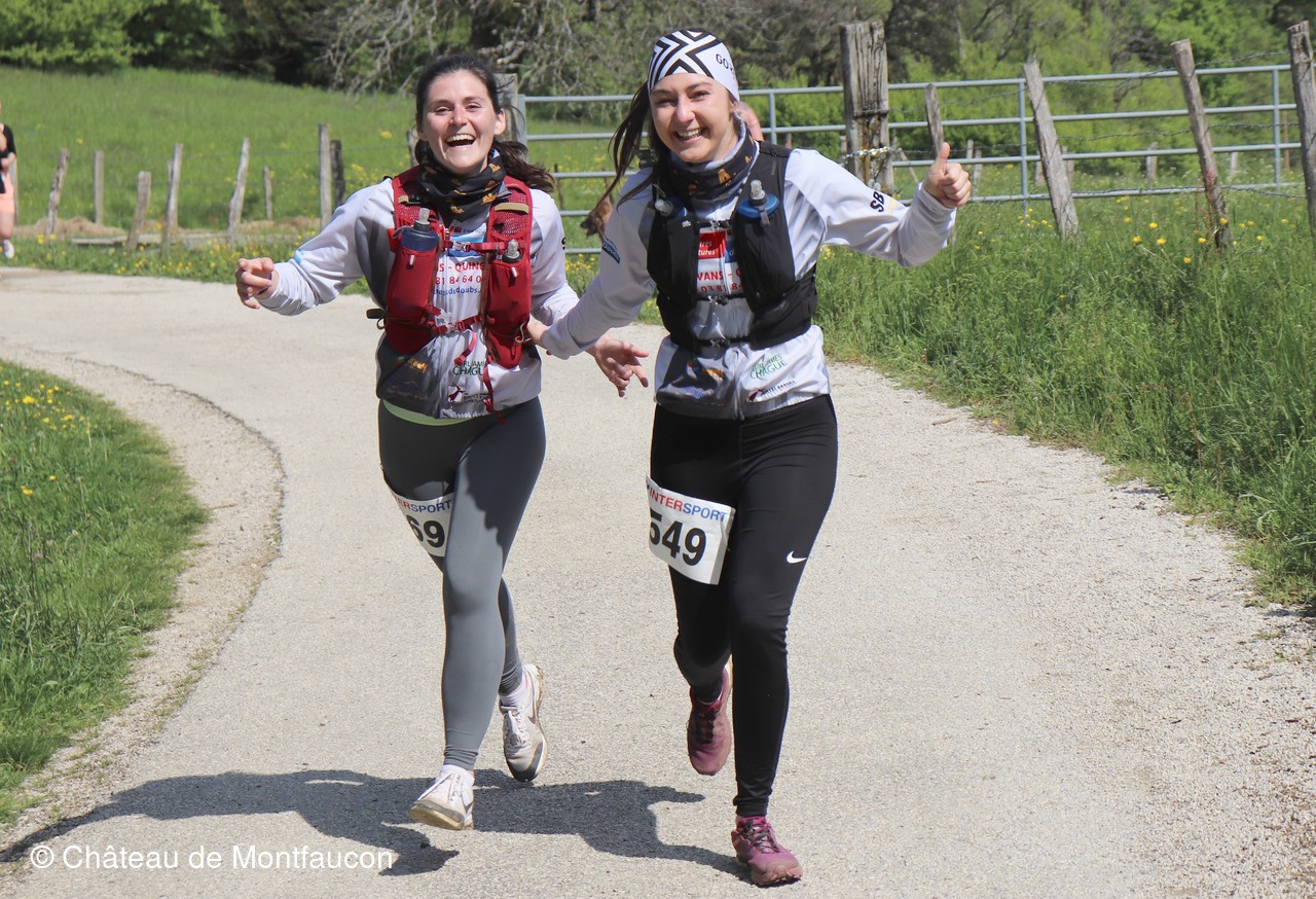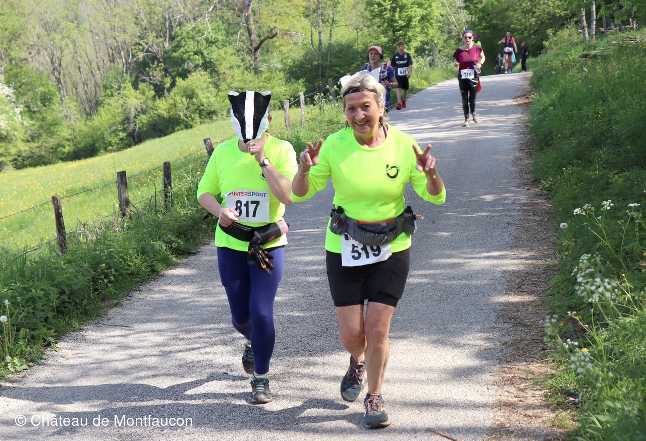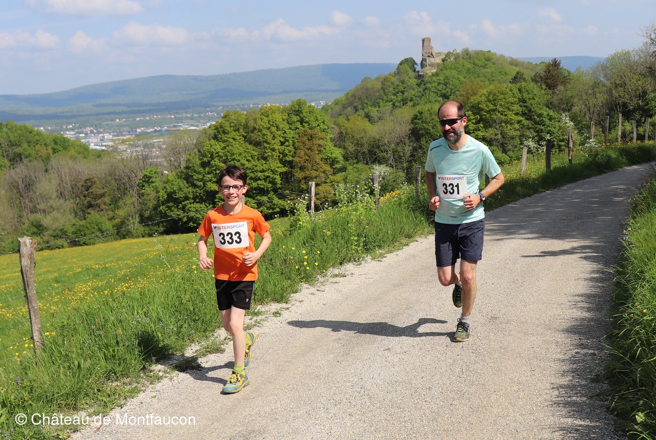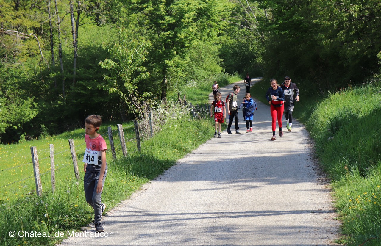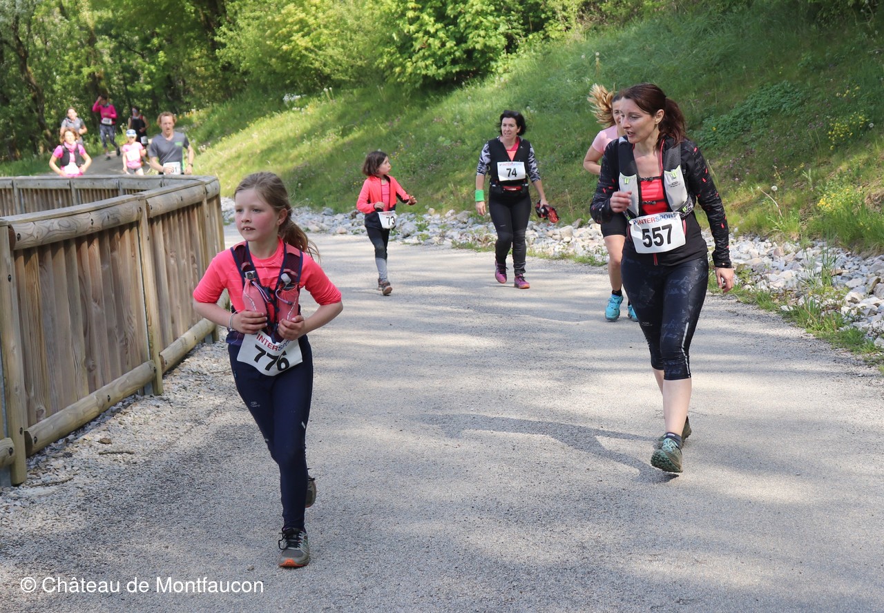 Le Trail de Montfaucon est passé par le château de Montfaucon puis les participants ont emprunté le chemin du Donjon qui mènait à l'arrivée (salle d'accueil). Malgré une montée un peu raide sur la fin, les sourires et les petits gestes de remerciements étaient au rendez-vous. Au fond du vallon, le donjon se dressait fièrement comme pour saluer sympathiquement marcheurs et coureurs.