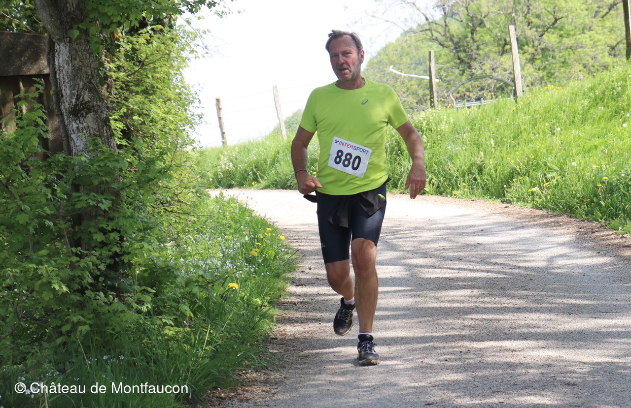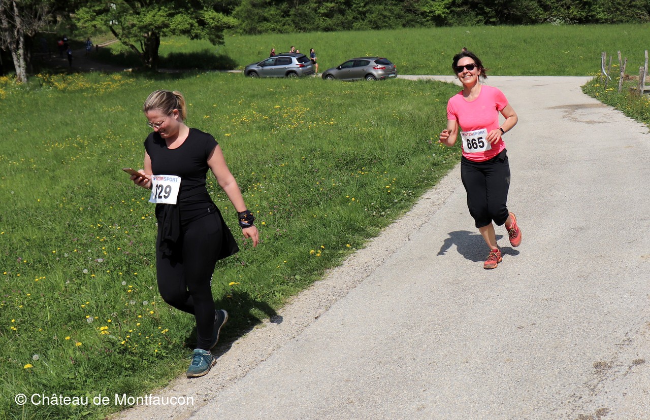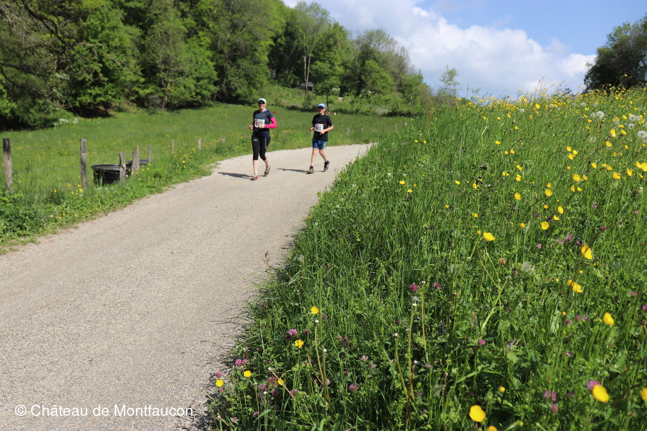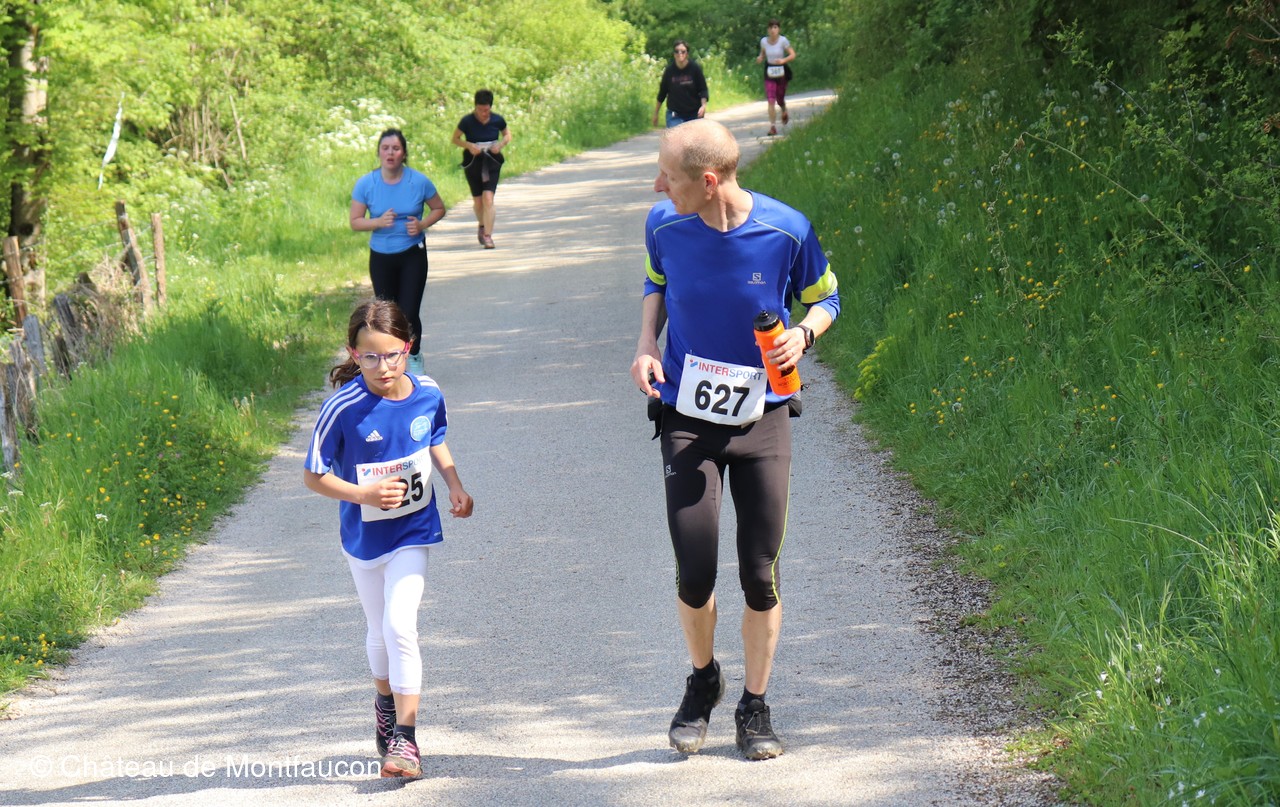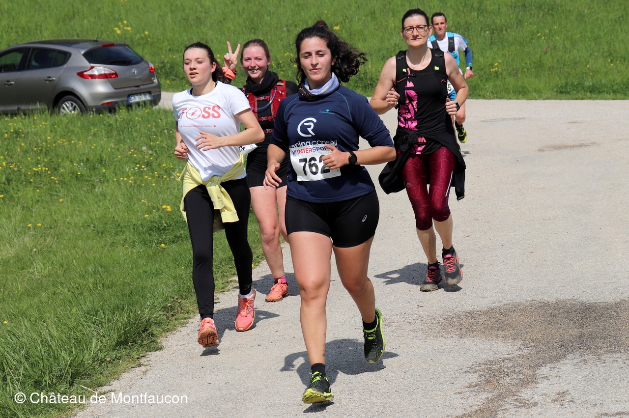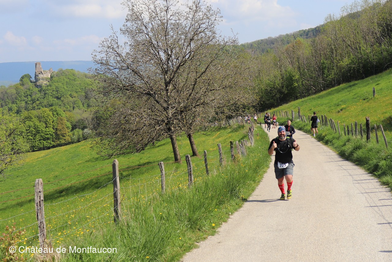 Le Trail de Montfaucon est passé par le château de Montfaucon puis les participants ont emprunté le chemin du Donjon qui mènait à l'arrivée (salle d'accueil). Malgré une montée un peu raide sur la fin, les sourires et les petits gestes de remerciements étaient au rendez-vous. Au fond du vallon, le donjon se dressait fièrement comme pour saluer sympathiquement marcheurs et coureurs.