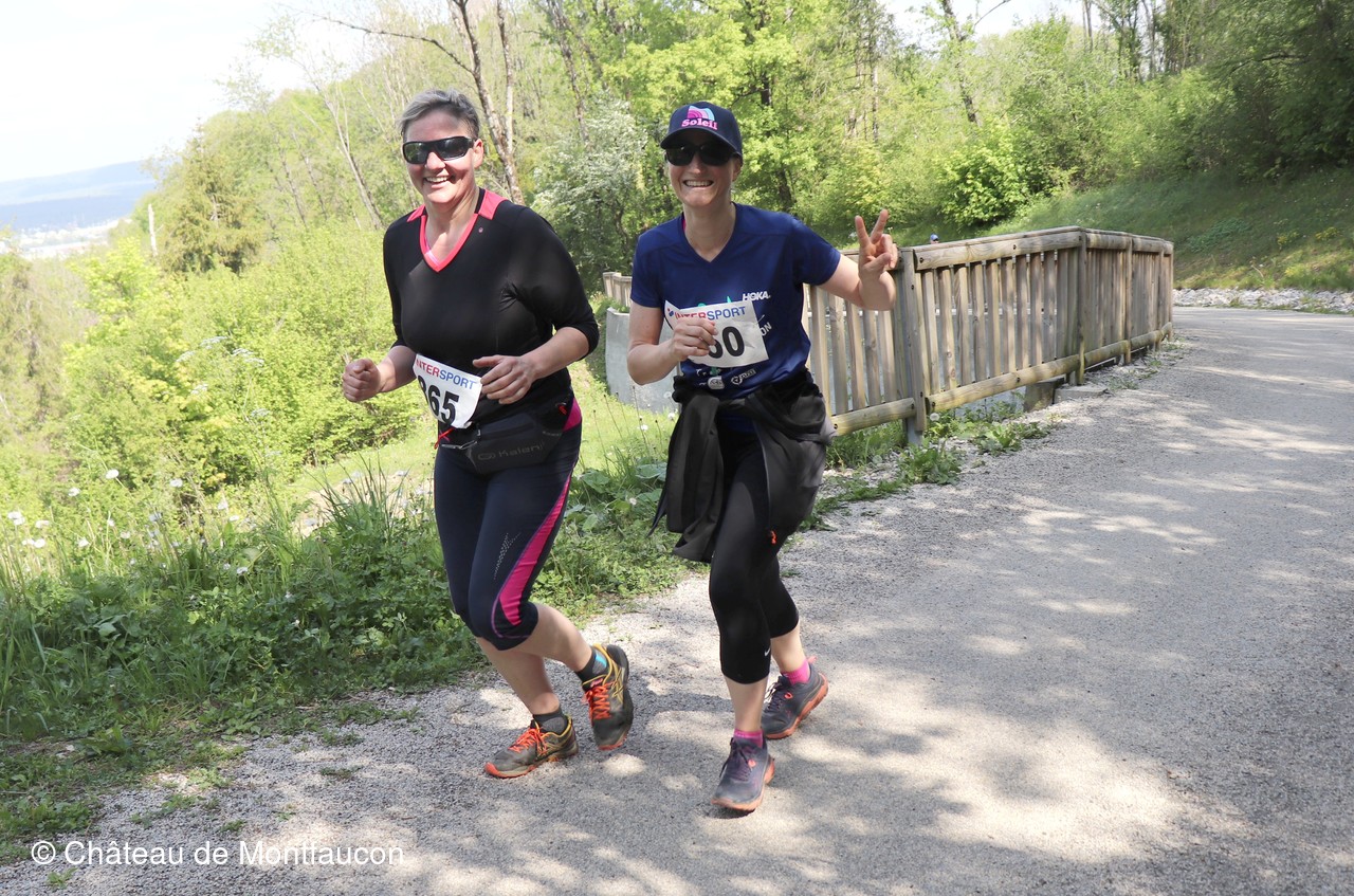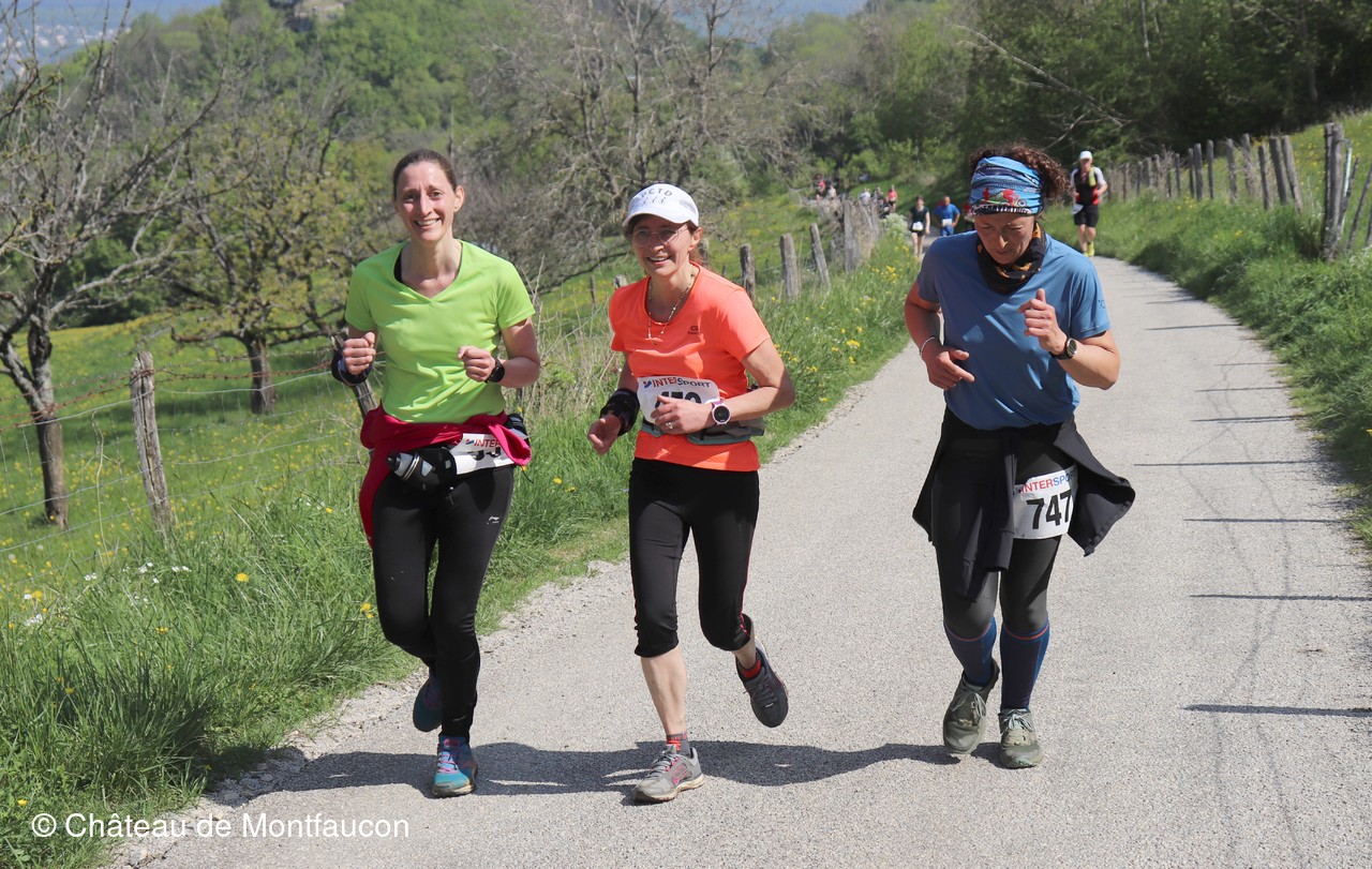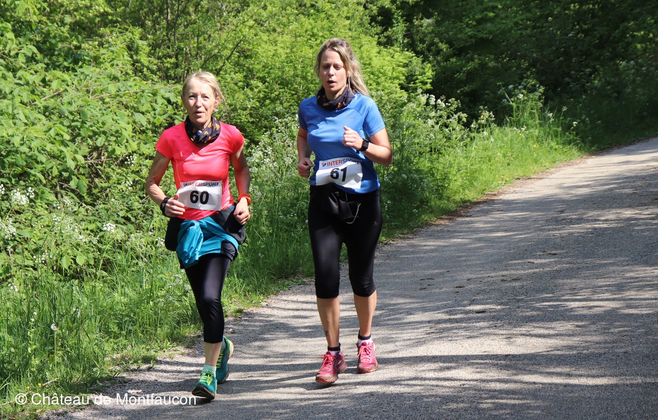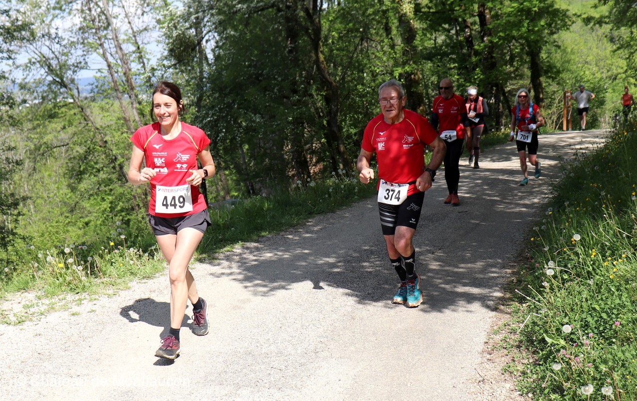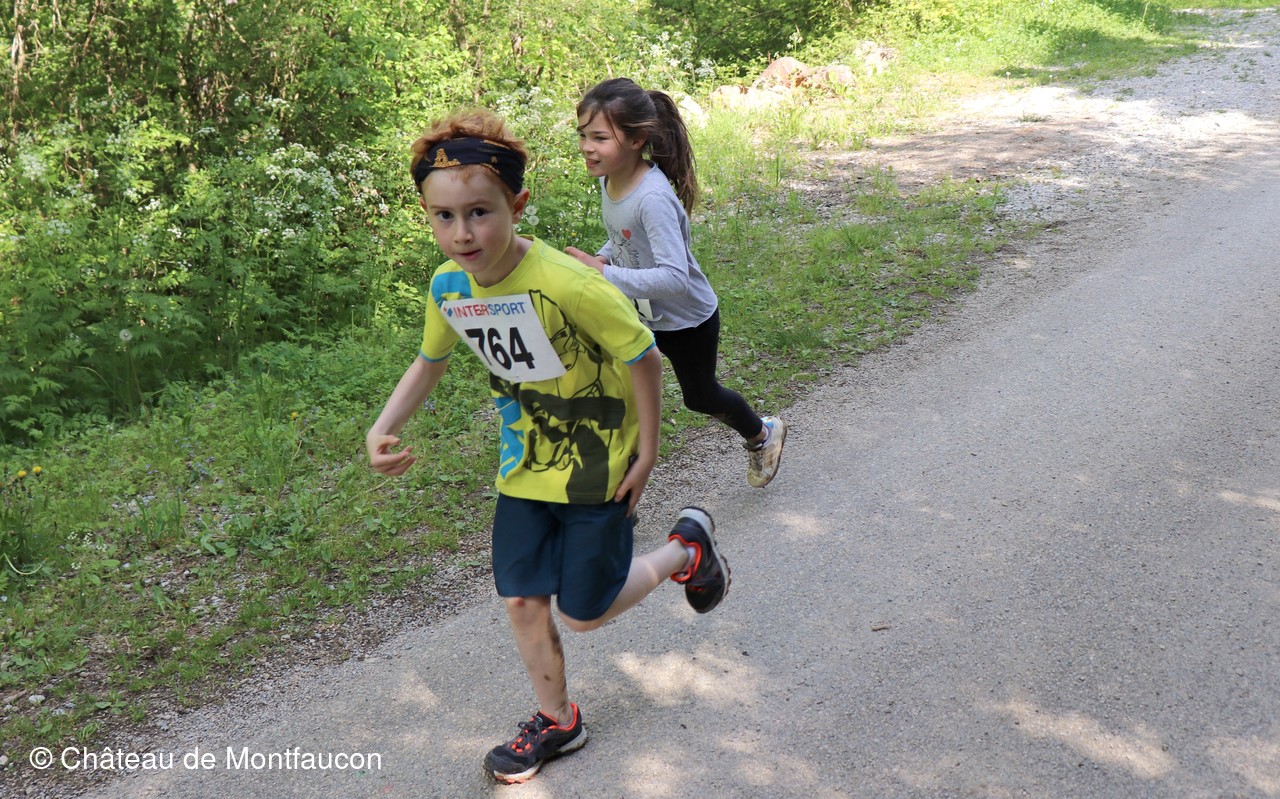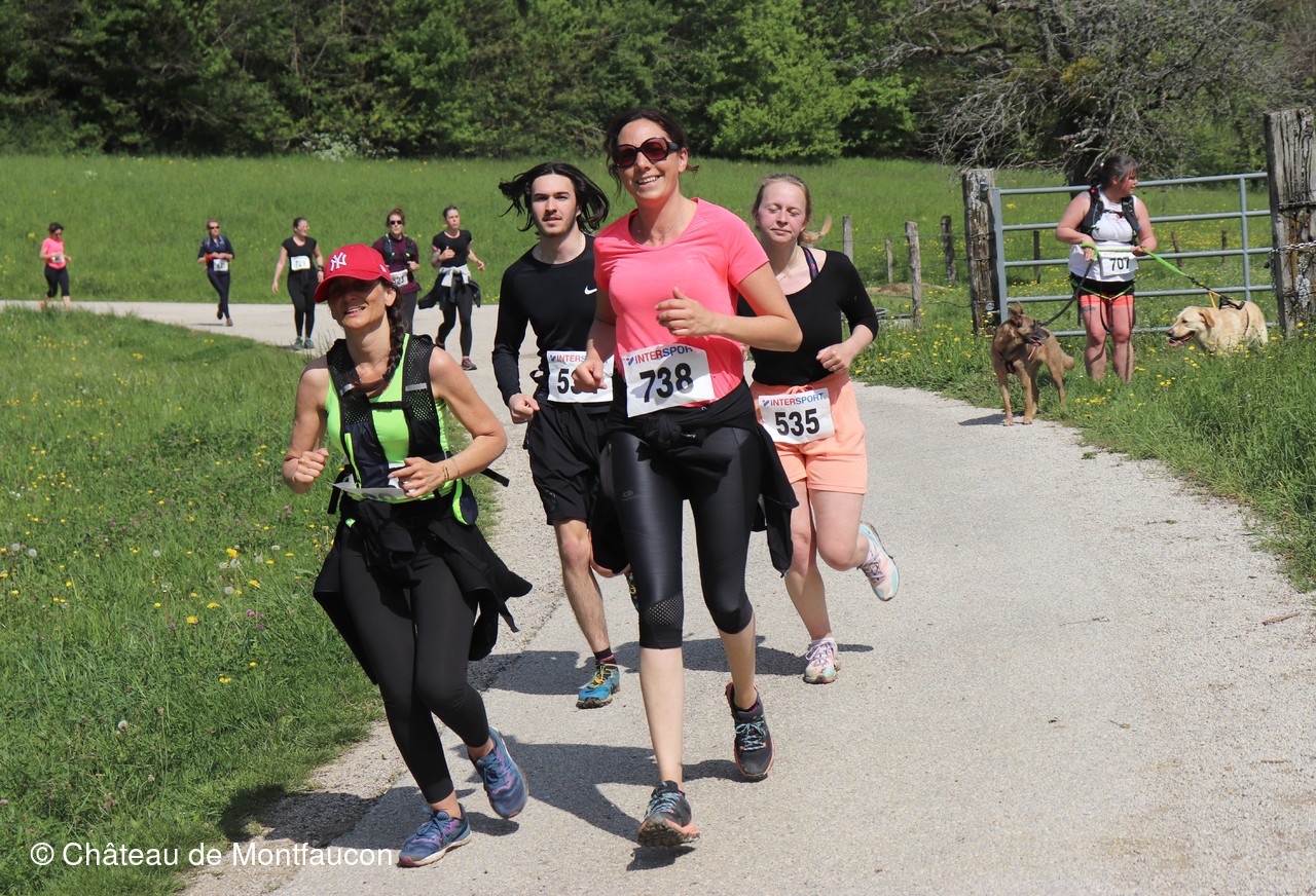Le Trail de Montfaucon est passé par le château de Montfaucon puis les participants ont emprunté le chemin du Donjon qui mènait à l'arrivée (salle d'accueil). Malgré une montée un peu raide sur la fin, les sourires et les petits gestes de remerciements étaient au rendez-vous. Au fond du vallon, le donjon se dressait fièrement comme pour saluer sympathiquement marcheurs et coureurs.