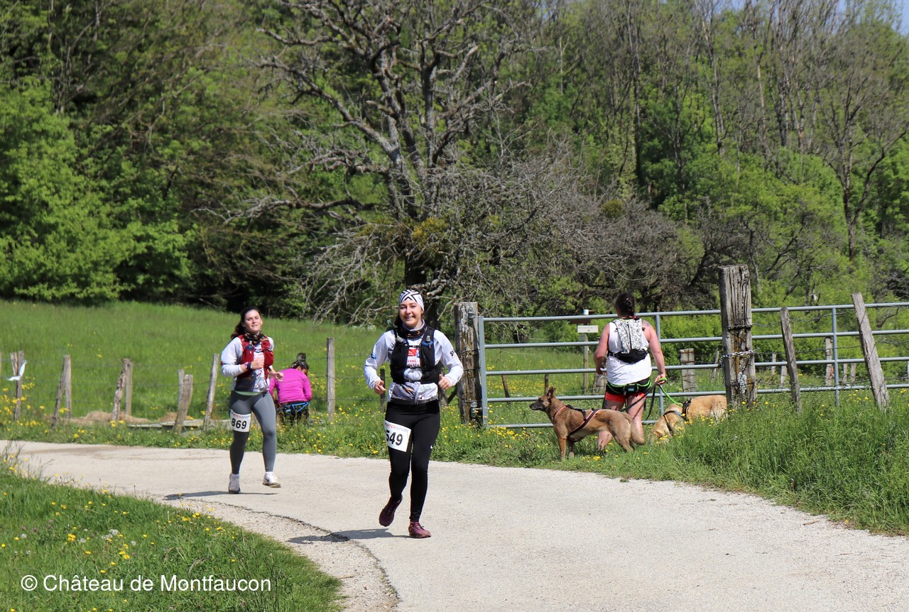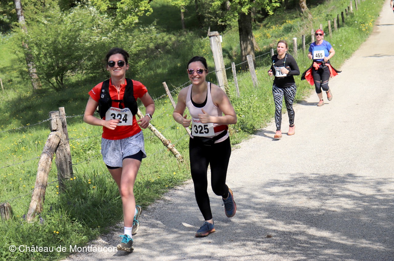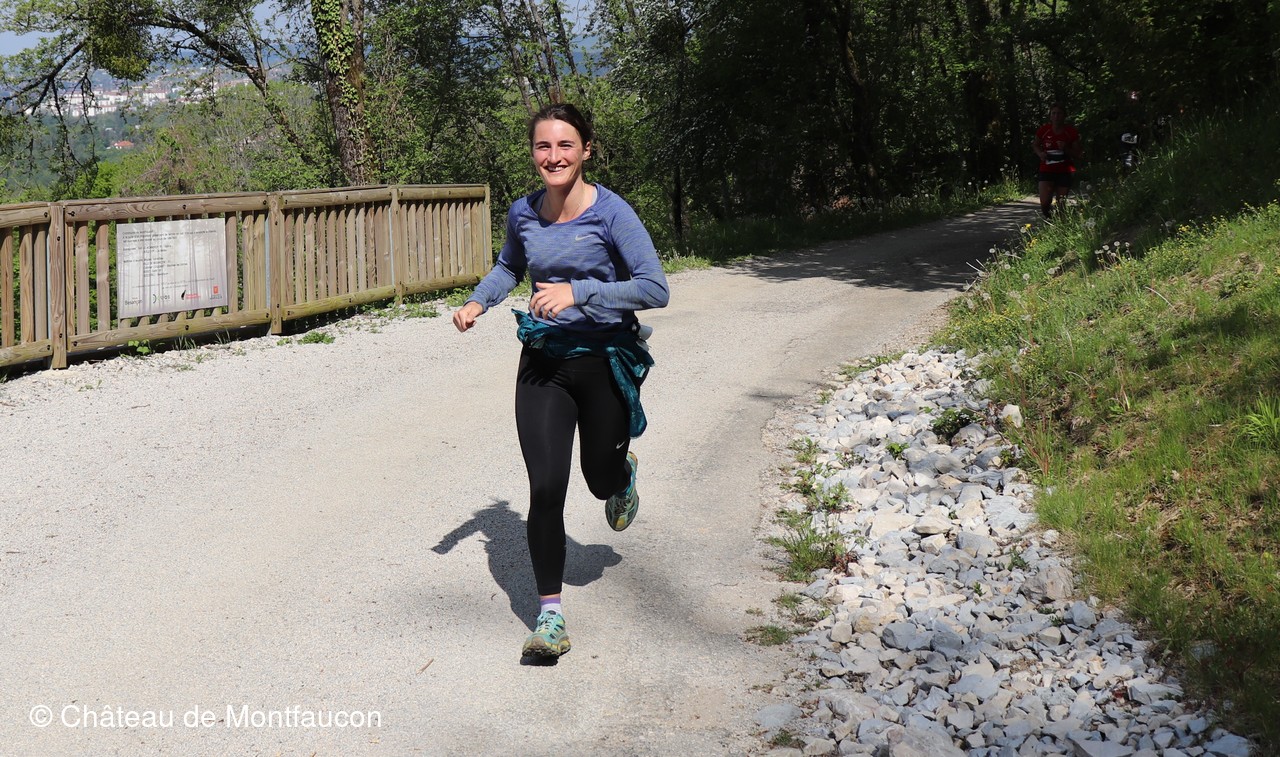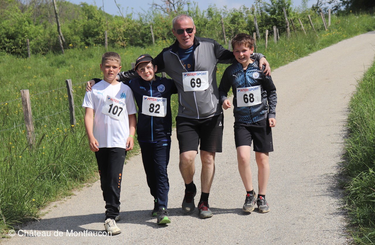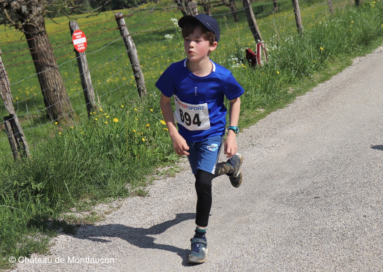 Le Trail de Montfaucon est passé par le château de Montfaucon puis les participants ont emprunté le chemin du Donjon qui mènait à l'arrivée (salle d'accueil). Malgré une montée un peu raide sur la fin, les sourires et les petits gestes de remerciements étaient au rendez-vous. Au fond du vallon, le donjon se dressait fièrement comme pour saluer sympathiquement marcheurs et coureurs.