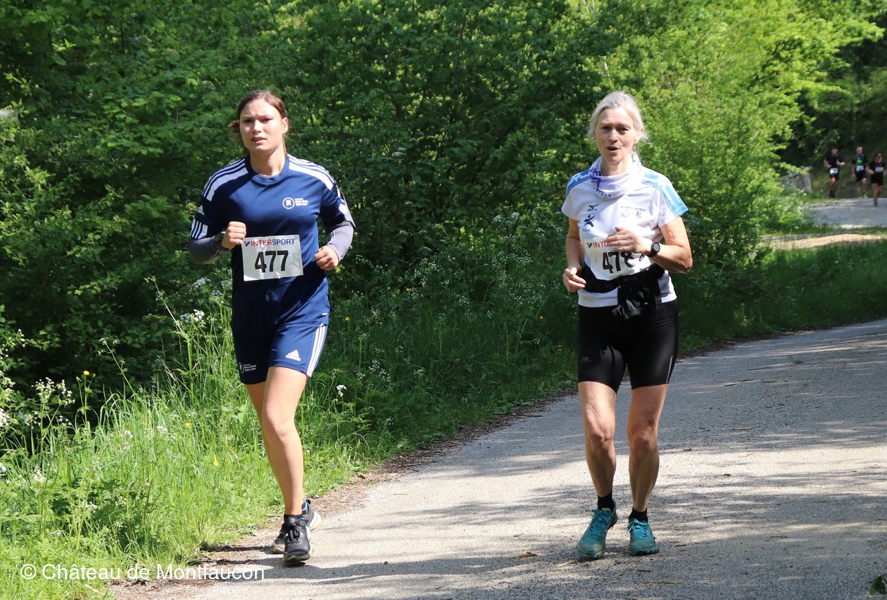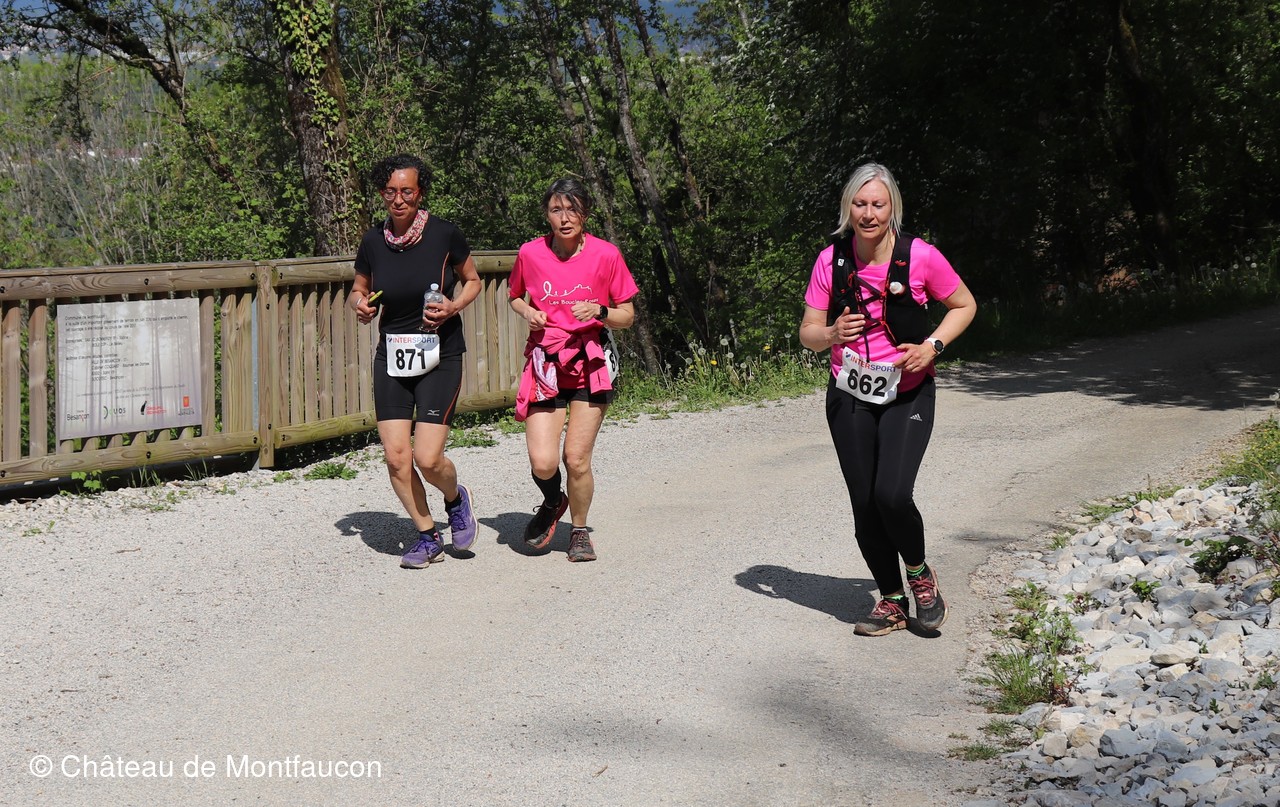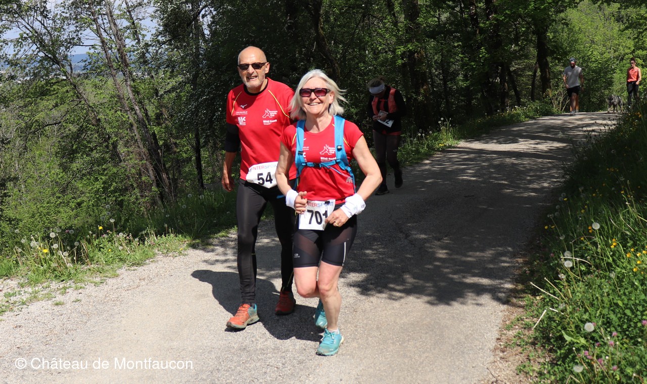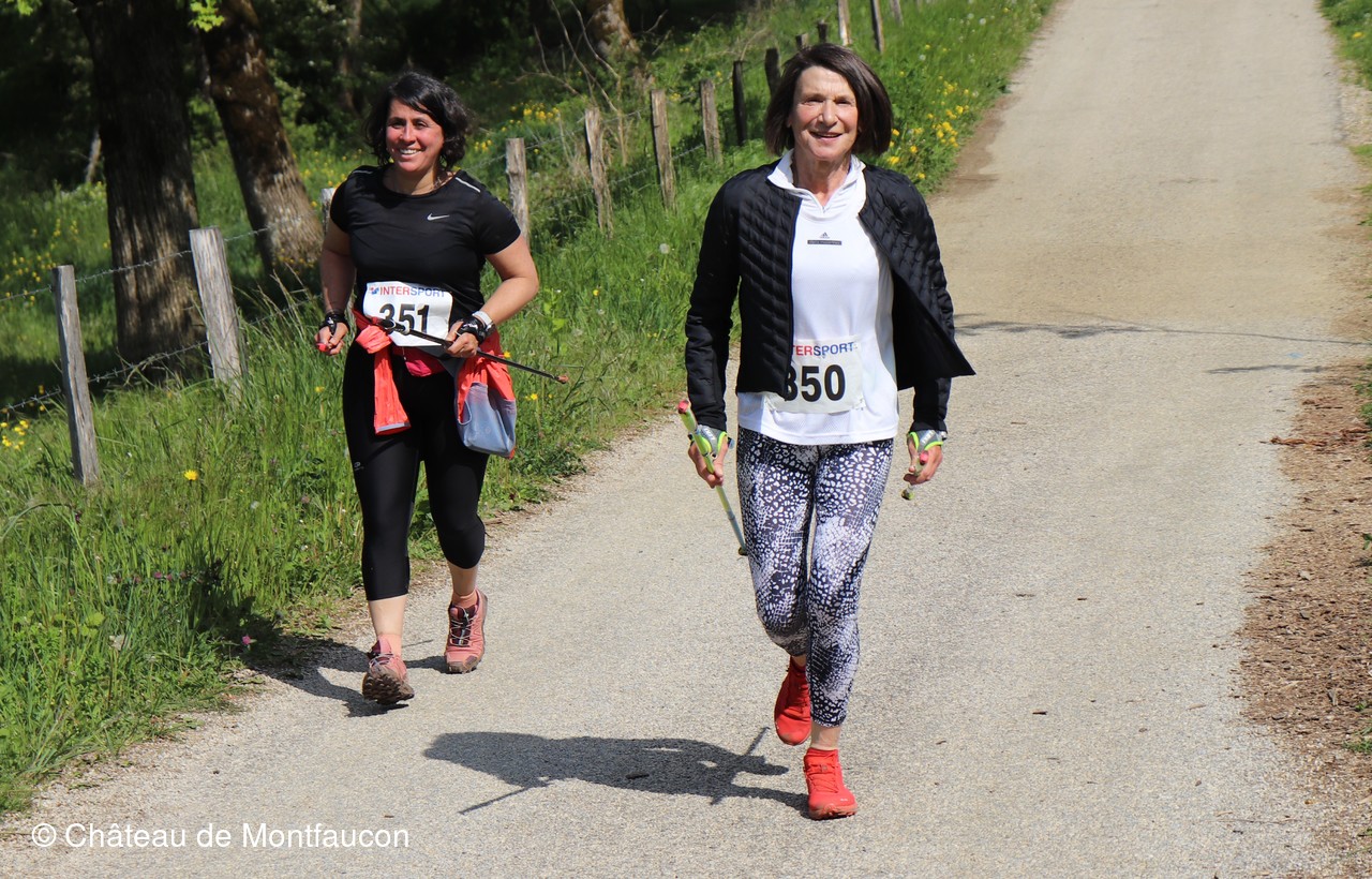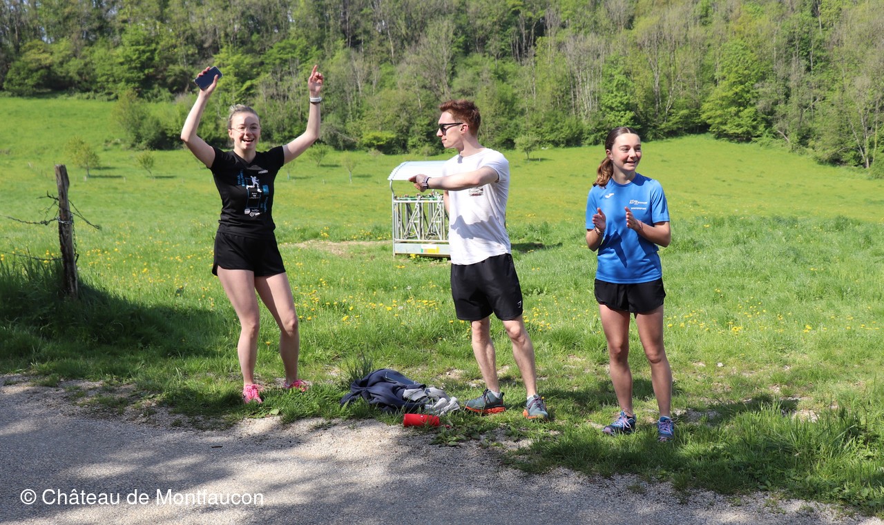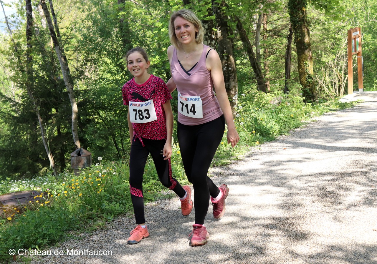 Le Trail de Montfaucon est passé par le château de Montfaucon puis les participants ont emprunté le chemin du Donjon qui mènait à l'arrivée (salle d'accueil). Malgré une montée un peu raide sur la fin, les sourires et les petits gestes de remerciements étaient au rendez-vous. Au fond du vallon, le donjon se dressait fièrement comme pour saluer sympathiquement marcheurs et coureurs.