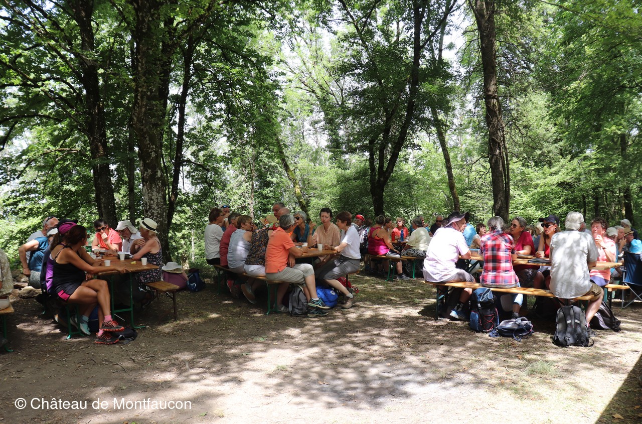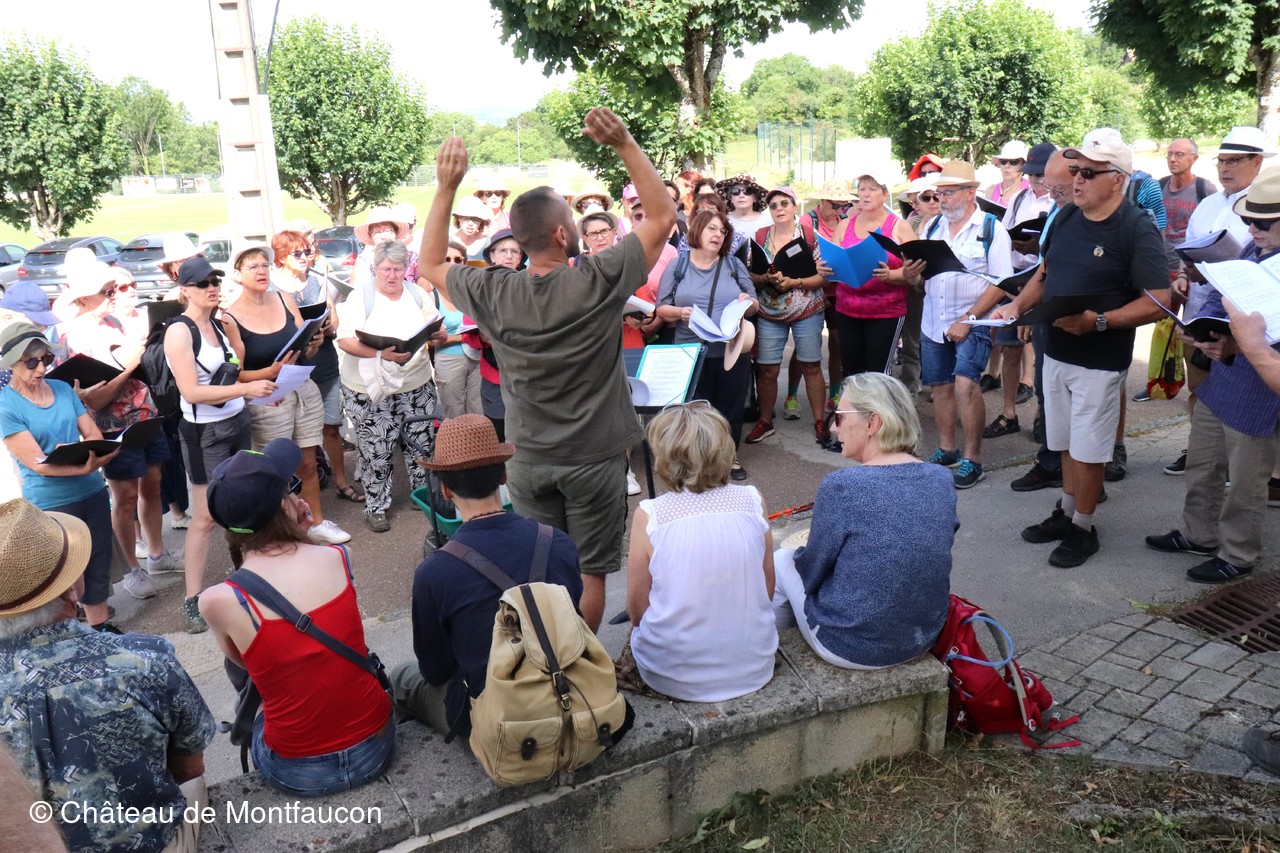 Merci aux 3 chorales et à leur chef de chœur Maxime NICOLAS, à Christiane MIDALI, la guide conférencière du jour, à la Commune de Montfaucon et à son personnel, aux spectateurs qui ont participé à cette randonnée, aux cadichons falcomontais qui ont été également l'attraction de la journée, et merci aux bénévoles de notre association qui ont assuré pour la préparation de l'espace pique-nique et apéritif ,et qui ont servi avec sourires et efficacité les 120 à 130 personnes présentes sur ce magnifique lieu de convivialité.